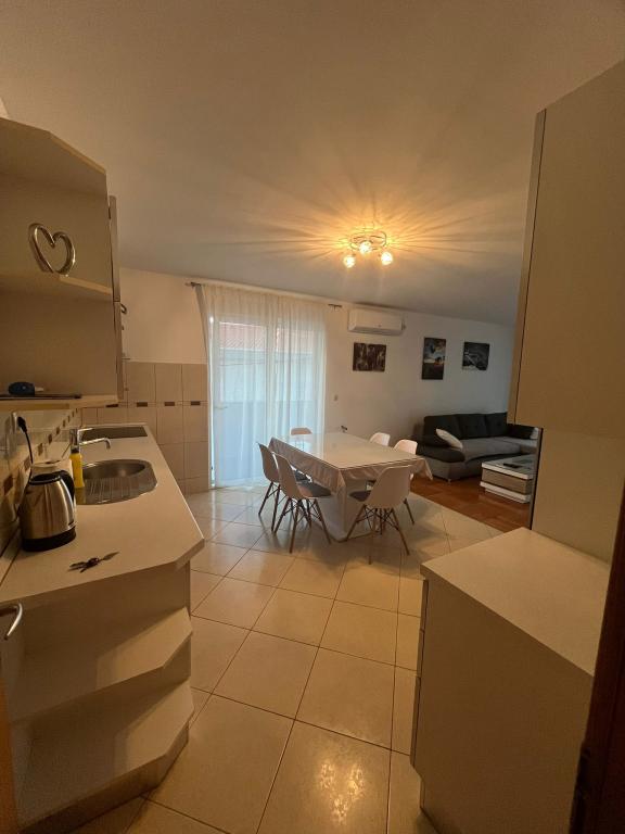L'appartement est situé dans un endroit calme dans le village de Slatina. Du centre-ville est 2 km. distance de Voyage de la plage est 60m. L'appartement dispose de trois chambres à coucher, cuisine, salle à manger, salon, salle de bains ... Il a internet, satellite, lave-linge, lave-vaisselle, ...