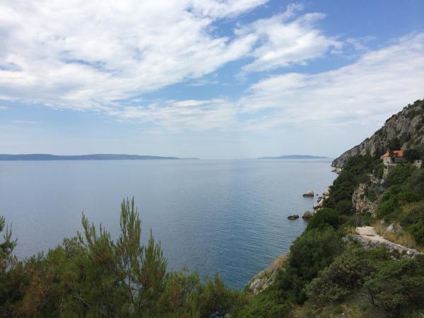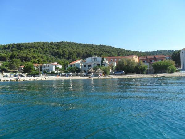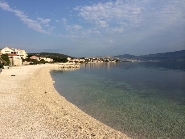 Les appartements sont situés très près de la plage avec une belle vue sur la mer. Très propre, équipé de tout le nécessaire. La propriétaire est très gentille, serviable et se soucie de ses invités. Une plage bien entretenue avec des galets fins et une douche extérieure. Placer dans un quartier calme. Il se trouve cependant à proximité de bars, de restaurants et d'une aire de jeux aquatique. Proche des excursions à Trogir et Split. Vous pouvez vous y rendre en transports en commun et en ferry.
