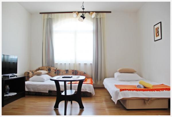 Nous avons séjourné dans un grand appartement et nous sommes très satisfaits. L'appartement est plus grand, plus agréable et plus équipé que sur les photos. La plage est littéralement de l'autre côté de la route, ce qui est super, surtout pour ceux d'entre nous avec de jeunes enfants. De plus, l'appartement dispose d'un balcon et d'une terrasse avec une belle vue sur la mer. Bel emplacement de l'appartement, mer merveilleuse et claire. Les propriétaires sont polis et discrets. Nos recommandations à tous !