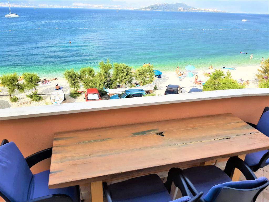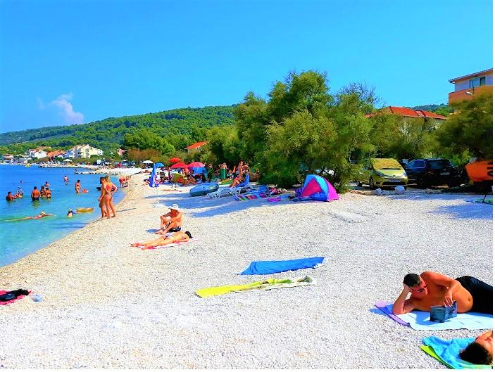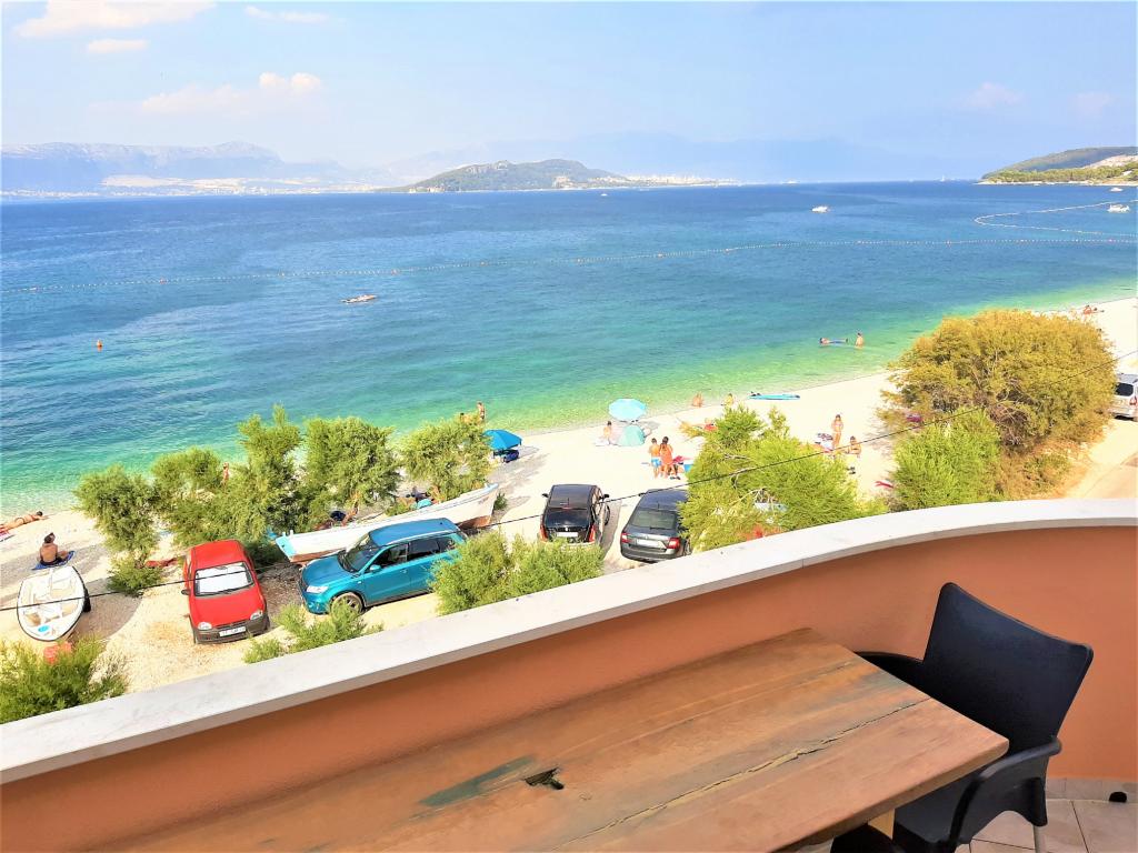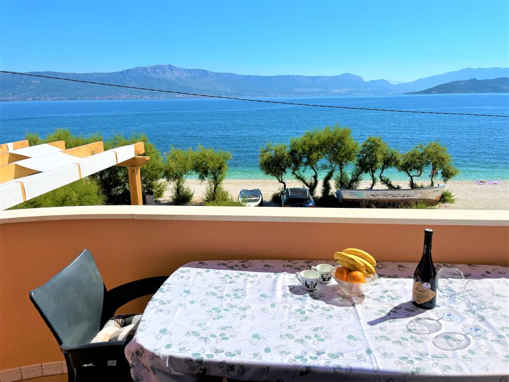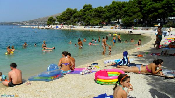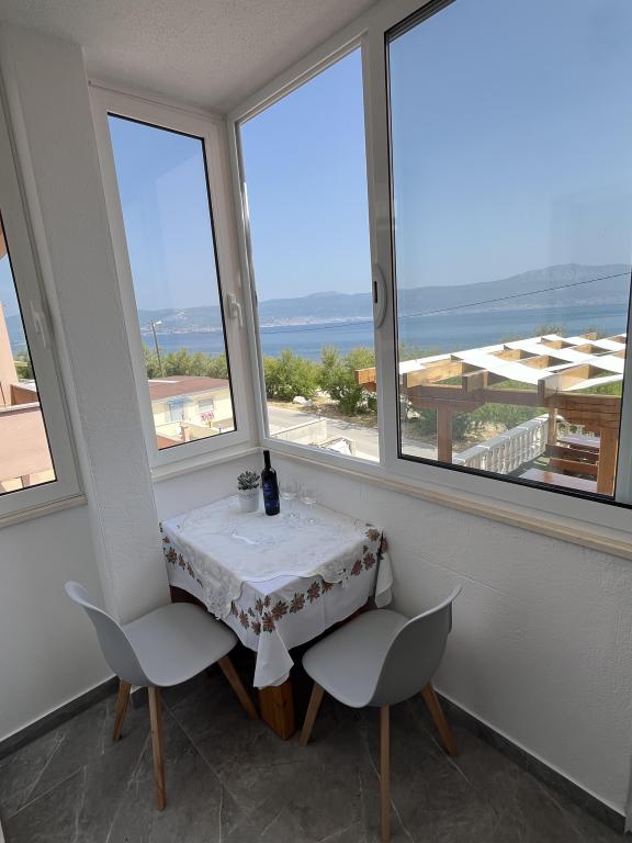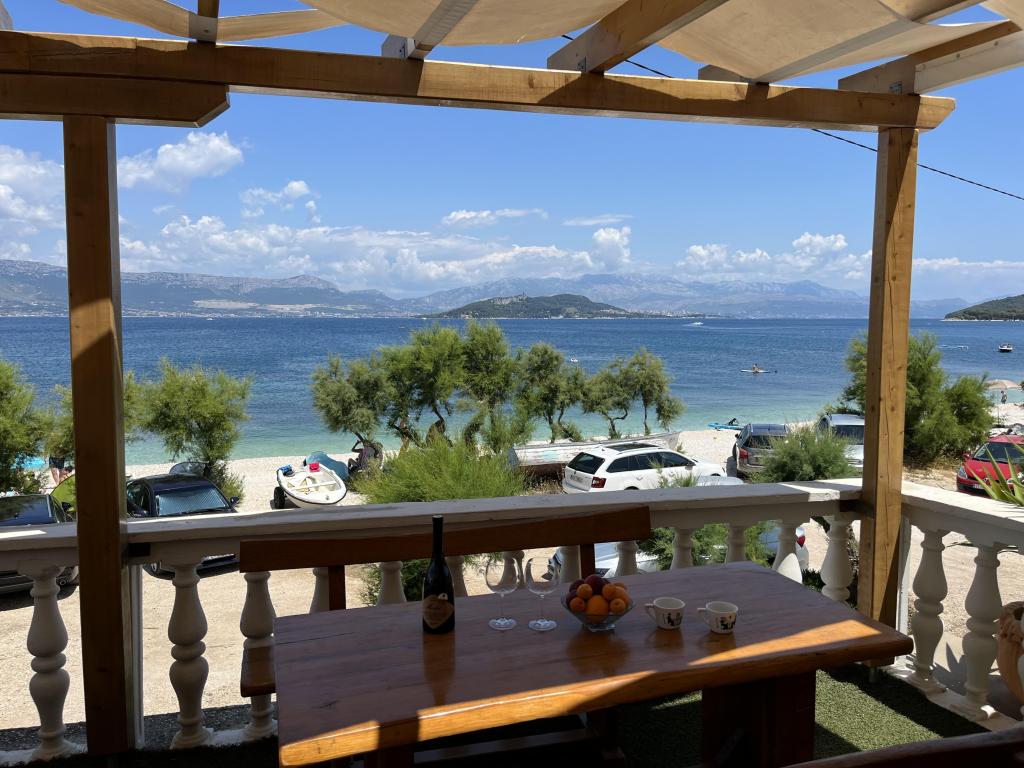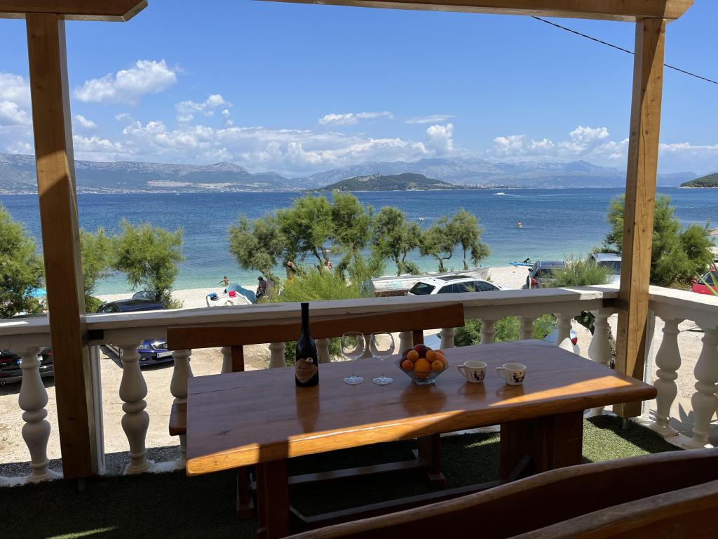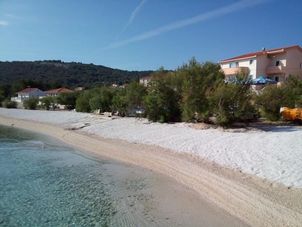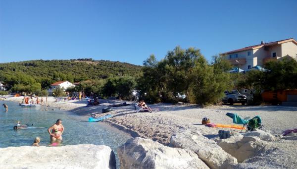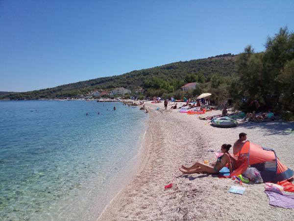 Les appartements sont situés à proximité immédiate de la plage, à seulement 10 mètres, et offrent une magnifique vue sur la mer. Très propres, ils sont équipés de tout le nécessaire. La propriétaire est très aimable, serviable et aux petits soins pour ses hôtes. La plage est aménagée avec des galets fins et une douche extérieure. L'appartement est situé dans un quartier calme, à proximité de bars, de restaurants et d'une aire de jeux aquatiques. Des excursions vers Trogir et Split sont également à proximité. Accessibles par les transports en commun et le ferry.
