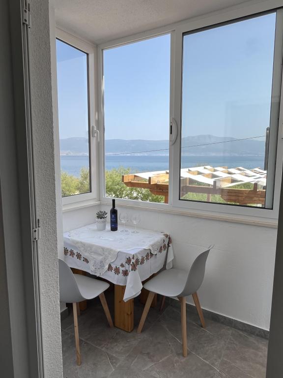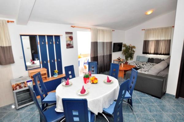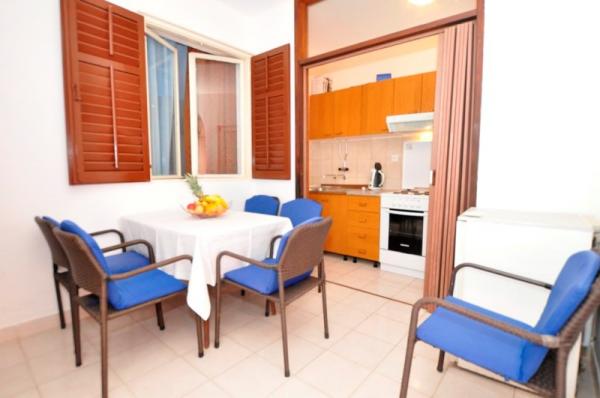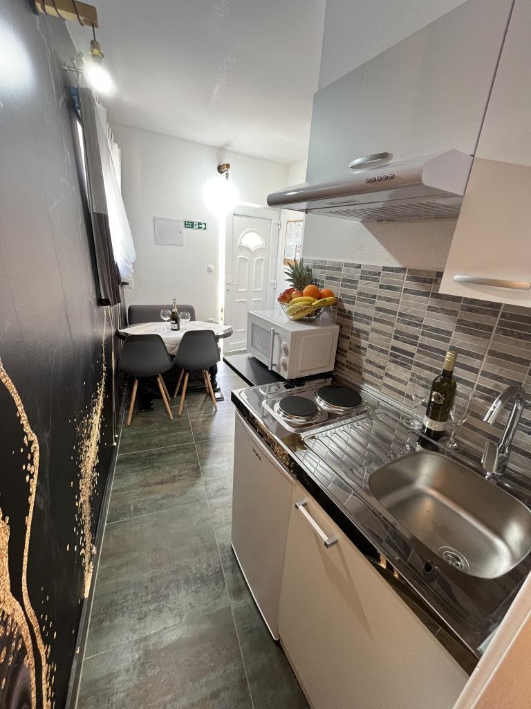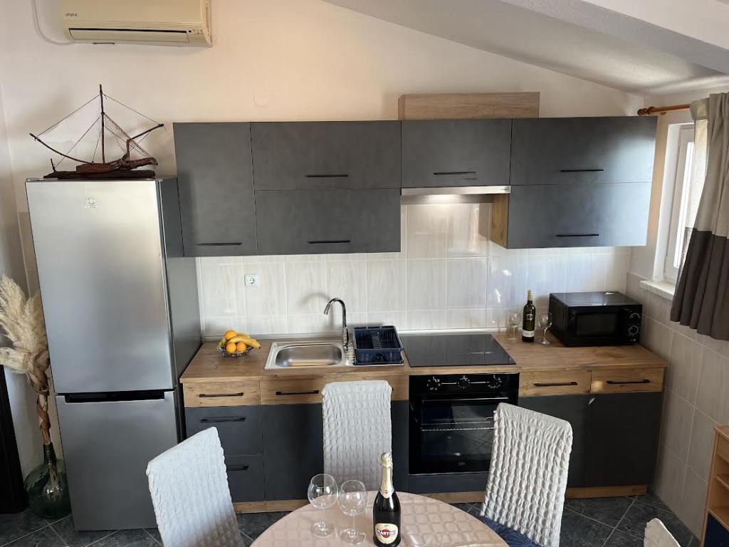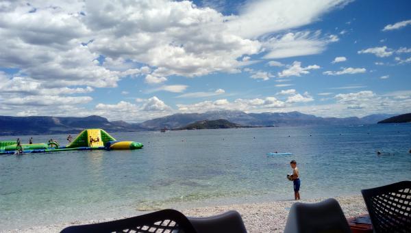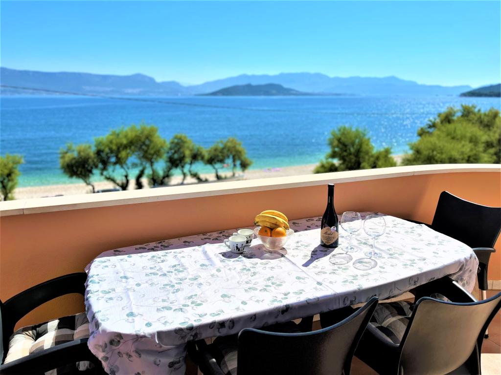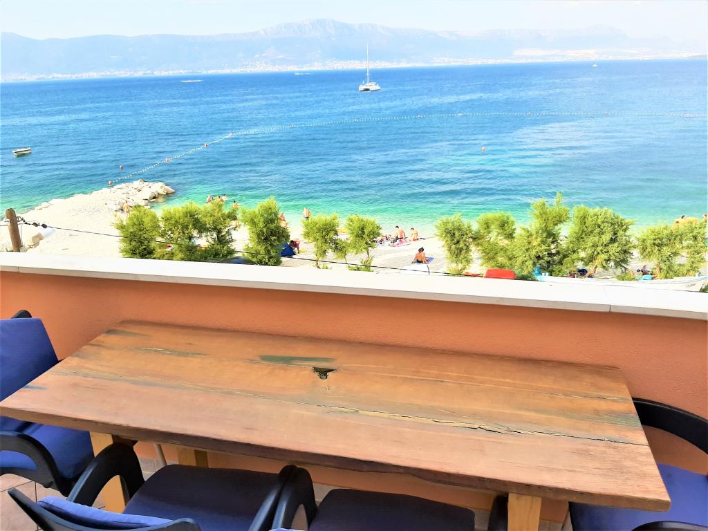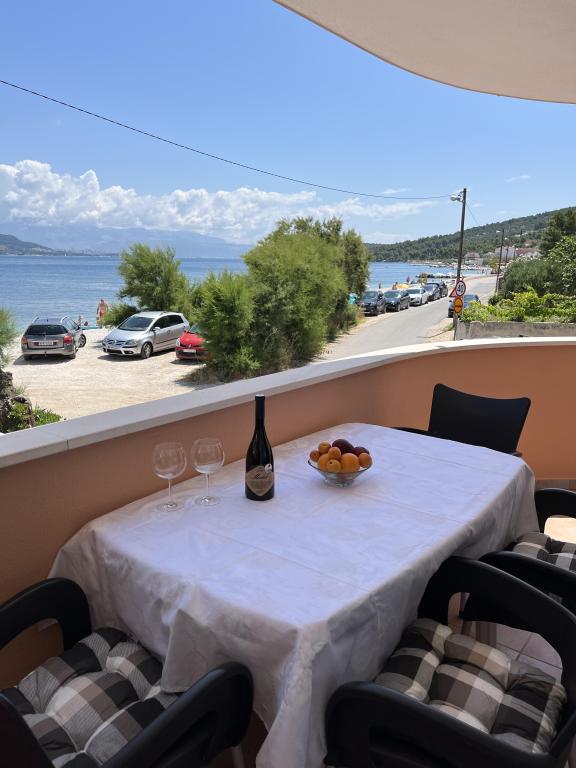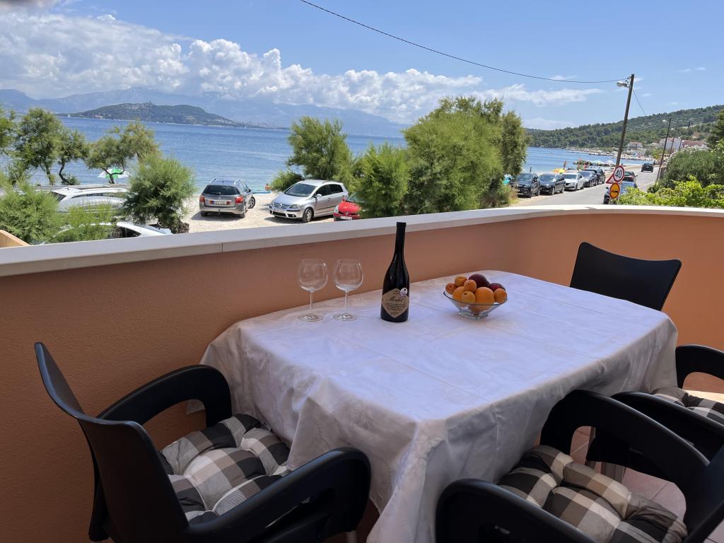 Les appartements sont situés à proximité immédiate de la plage, à seulement 10 mètres, et offrent une magnifique vue sur la mer. Très propres, ils sont équipés de tout le nécessaire. La propriétaire est très aimable, serviable et aux petits soins pour ses hôtes. La plage est aménagée avec des galets fins et une douche extérieure. L'appartement est situé dans un quartier calme, à proximité de bars, de restaurants et d'une aire de jeux aquatiques. Des excursions vers Trogir et Split sont également à proximité. Accessibles par les transports en commun et le ferry.