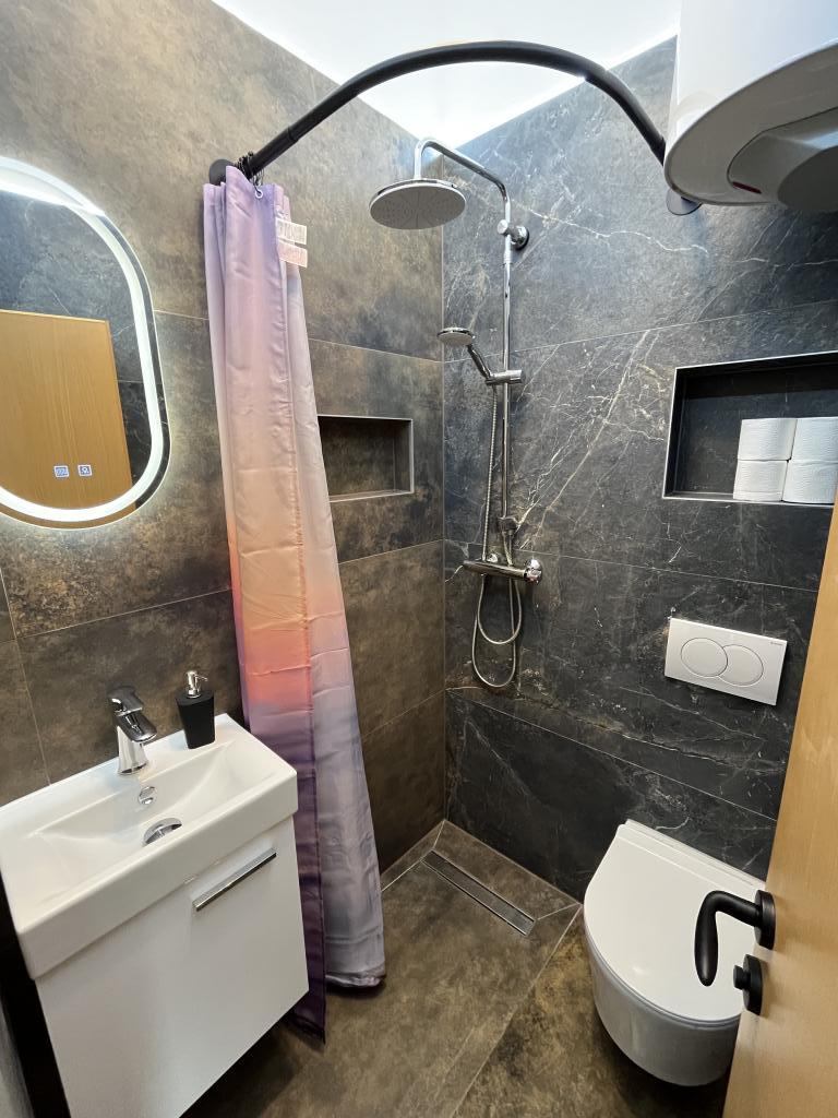 Nous ne pouvons que recommander cet appartement. Non seulement c'était dans un quartier calme de Slatine, mais en plus il répondait à nos exigences (calme, loin des gens, petite terrasse, ...). Les hôtes étaient très arrangeants et ont immédiatement répondu à toutes nos questions et demandes. Nous étions logés en 2+1, deux adultes. D'après les photos, l'appartement avait l'air plus grand, vous pourriez être surpris que la cuisine soit dans le hall, mais tout était propre, assez neuf. Un gros avantage était le stationnement dans la cour de l'appartement et la possibilité d'utiliser le garage comme lieu de stockage pour les outils hydrauliques. La plage devant l'appartement est la plus belle et la plus grande de tout Slatine, il y avait beaucoup d'espace dessus, les gens nettoyaient après eux. La mer est magnifiquement propre, pleine de poissons ! Il y a un grill et un bar dans le logement - mais nous ne les avons pas utilisés. Selon l'hôte, il est utilisé lorsqu'il y a un plus grand groupe de personnes et qu'ils se réunissent pour une bière. Le grand magasin le plus proche est assez loin (1 km) et le restaurant à environ 800 m par une belle promenade le long de la côte. C'est pourquoi je recommande d'acheter dans une plus grande ville (Trogir - Plodine, Kaufland).