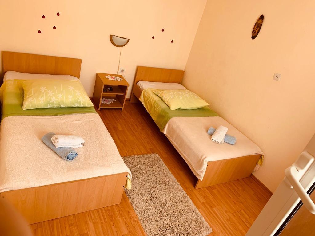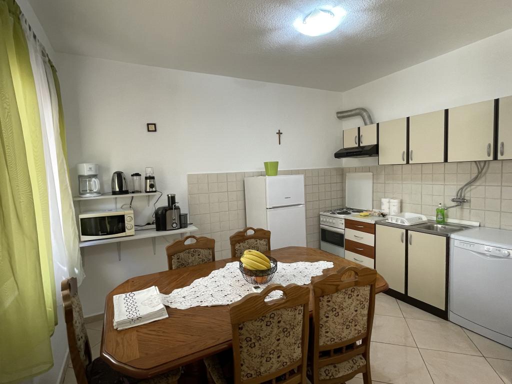 Le logement est situé dans une jolie petite ville tranquille et attrayante de Slatine, à 6 km de la ville UNESCO de Trogir, à 30 km de la ville UNESCO de Split. Le bâtiment est éloigné de la plage de galets et de la mer seulement 50 m. Le bâtiment a une vue sur la mer. Le logement est entouré de paix, de calme et d'un quartier bien intentionné. L'établissement dispose de son propre parking clôturé qui est gratuit. L'établissement d'hébergement se compose de deux unités d'hébergement (Appartement A4 + 2 et Appartement A4.). Chaque logement dispose d'une place de parking gratuite dans la cour du bâtiment. Appartement A4 + 2: La superficie de l'appartement est de 65 m2, se compose d'un grand salon et cuisine, 2 grandes chambres avec lit double, de grandes toilettes et deux grandes terrasses, sur une terrasse il y a une cheminée pour barbecue. L'unité d'hébergement peut accueillir un maximum de 6 personnes (4 adultes + 2 adultes sur un canapé pliant dans le salon.) L'unité d'hébergement offre un lit pliant. Appartement A4: La superficie de ce logement est de 45 m2. Il se compose d'un salon et d'une cuisine. Une chambre avec un lit double et une chambre avec 2 lits et une petite toilette. Le logement dispose d'une grande terrasse avec vue partielle sur la mer. Sur la terrasse il y a une cheminée pour barbecue. Un maximum de 4 personnes peuvent séjourner dans l'unité d'hébergement. L'unité d'hébergement offre un lit bébé Curiosités de Slatine: Le monument le plus célèbre de Slatine est le sanctuaire de Notre-Dame de Prizidnice et l'église de l'Assomption de la Bienheureuse Vierge Marie. Ville de Trogir: Trogir fait partie d'une série de villes de Dalmatie qui sont sous la protection de l'UNESCO. Trogir a été fondée par les Grecs de l'Antiquité et est devenue au fil des siècles la ville romano-gothique la mieux conservée d'Europe. En