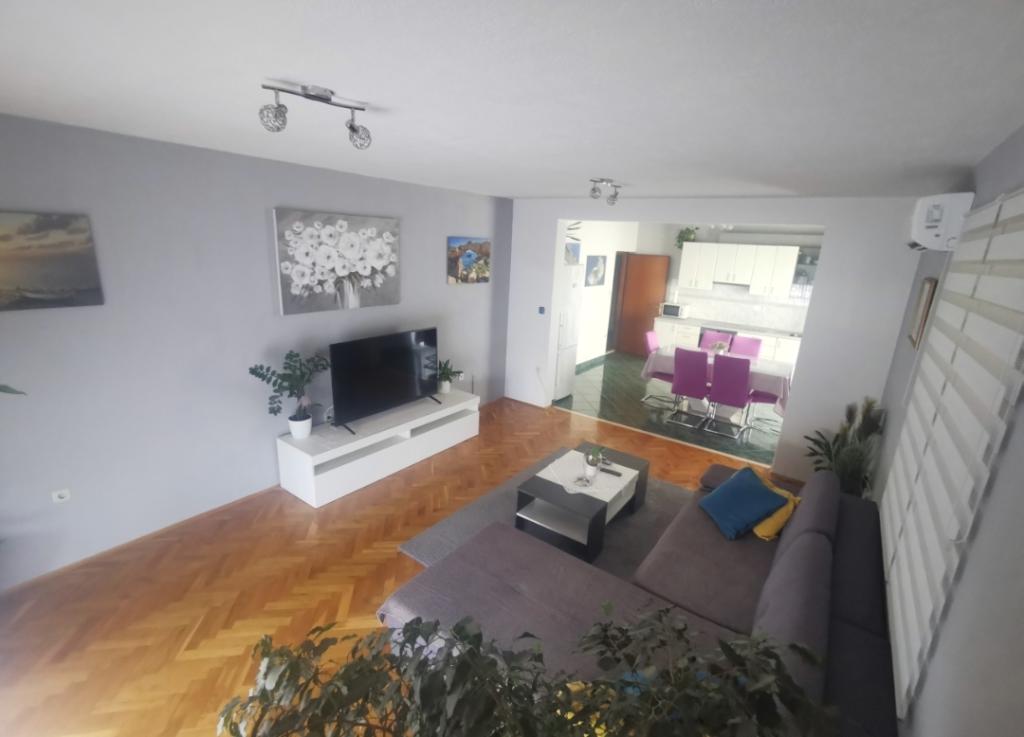 Bonjour ! J'ai le plaisir de vous présenter un appartement à Slatine, sur l'île de Čiovo ! Situé à Slatine, à seulement 40 m de la mer (plage visible sur la photo), cet appartement bénéficie d'un emplacement calme, idéal pour des vacances en famille. Il est équipé de la climatisation, d'internet, de la télévision et d'une antenne satellite. Un parking pour deux véhicules est à votre disposition. À bientôt à Slatine !