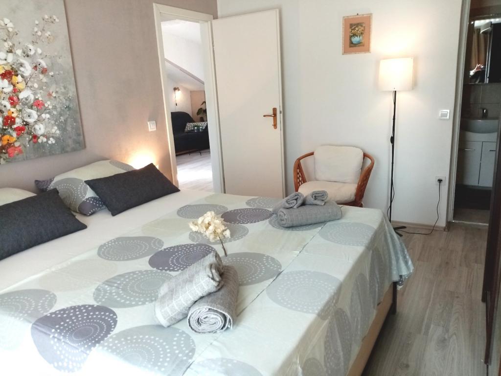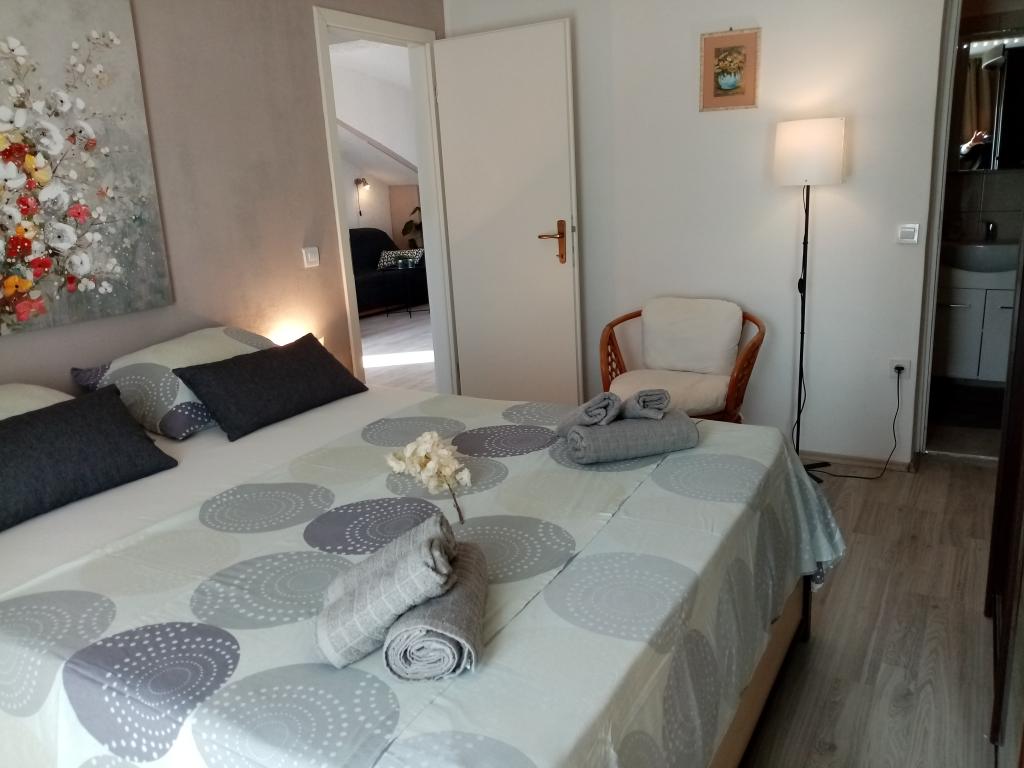 Bel appartement propre, équipé de lave-linge et lave-vaisselle, proche de la plage, des restaurants et des commerces. Serviettes disponibles. Mme Željka est très gentille et serviable. Un joli jardin avec trampoline, qui sera particulièrement apprécié des familles avec enfants. Il y a un port à proximité où vous pouvez embarquer sur le navire Bura Line et vous rendre à Split ou Trogir pour un très bon prix. Vous pouvez également utiliser le service de bus urbain pour Trogir.