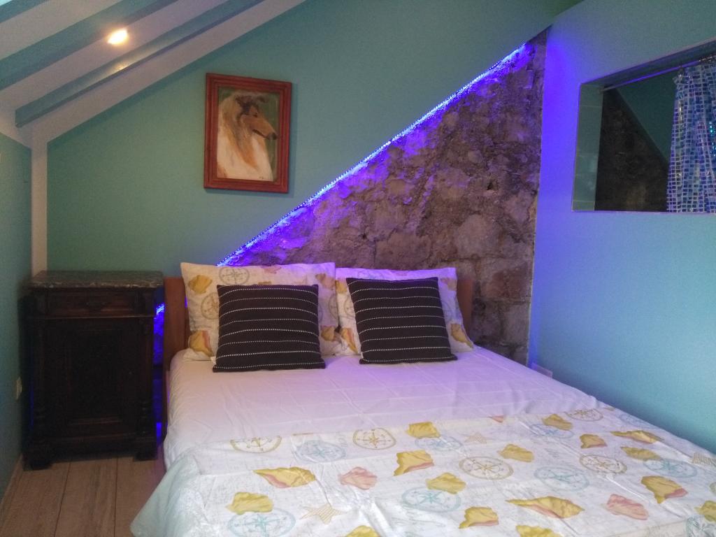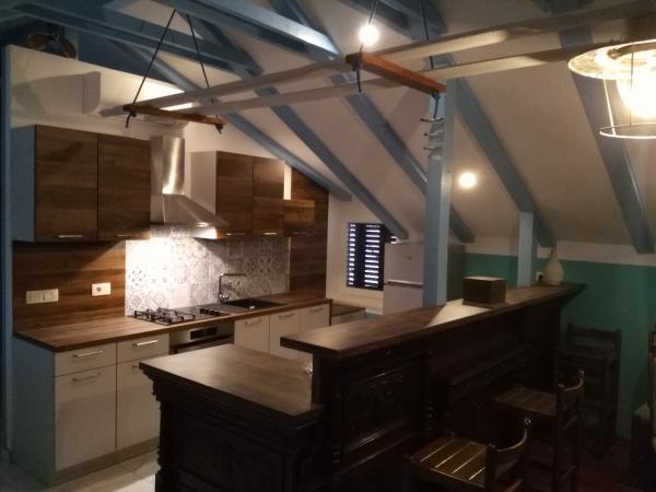 Taxe de sejour est inclus dans le prix. Document de confirmation de réservation lors de la réservationLa maison est unique par son architecture, dans la nature c'est une très ancienne villa en pierre avec des lucarnes sur le toit, une véranda ornée de voûtes en pierre et une terrasse, et devant laquelle se trouve une cour agrémentée d'une belle petite maison en pierre, dans lequel se trouvent une cheminée avec grill et four, ainsi que des bancs et une table en bois massif, créant ainsi une cuisine d'été pour des rencontres gastronomiques exceptionnelles et des expériences de cuisine traditionnelle locale, avec du vin et du cognac faits maison également à la disposition des hôtes. Devant l'entrée des appartements du 1er étage, se trouve une grande terrasse (loggia) avec un espace où vous pourrez déguster une tasse de thé, de café ou un verre de vin. Il est également permis de fumer ici. Une grande terrasse avec des bancs en bois et une table dans la cour à côté de la cuisine d'été ainsi qu'une douche solaire sont à la disposition des hôtes. Dans les combles, au 2ème étage, il y a un grand et spacieux appartement avec un grand salon d'où l'on accède à un grand balcon, et deux chambres séparées, chacune avec sa propre salle de bain. Une chambre dispose d'un lit double 200x160 et l'autre de deux lits.