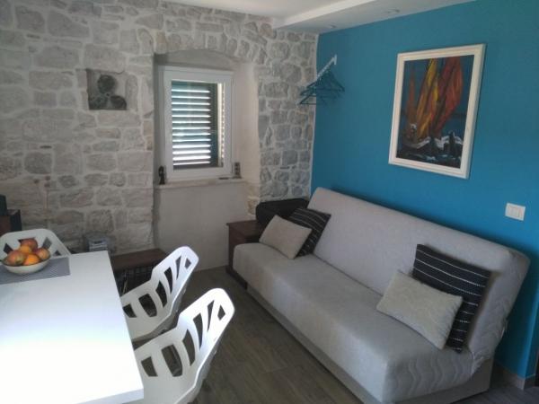 Les appartements de 36, 38 et 80 m2 sont situés dans une ancienne villa traditionnelle dalmate en pierre entièrement rénovée et rénovée, située à Slatine, un charmant village de pêcheurs sur l'île de Ciovo, parfaitement positionné à seulement 13 km de l'aéroport de Split et à 7 km de la Patrimoine culturel protégé par l'UNESCO de la ville de Trogir, qui est en soi un musée historique ouvert. La Villa Buga se trouve à seulement 250 m de la mer et de la première plage, et est située à proximité immédiate du centre-ville, où se trouvent des magasins, kiosques, cafés, bureaux de poste, etc. Forfait WI-FI gratuit - une connexion haut débit est à la disposition des clients. Hub intelligent TV Full UHD 40/43\\\\. Cuisine entièrement équipée avec tout le nécessaire pour un court ou long séjour. L'intérieur est décoré avec beaucoup d'attention et de beaux détails dans un style rustique méditerranéen avec quelques pièces antiques rares.