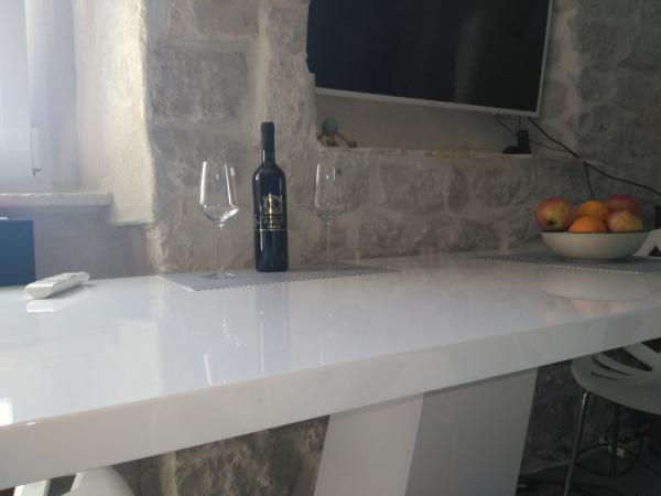 Nous venons de rentrer de Villa Buga après quelques jours de séjour. Ils étaient nos vacances en Croatie. mais nous n'avons jamais été aussi traités par l'hôte que cette fois. Davor à l'arrivée, nous a accueillis avec du vin et (noix). Une bouteille d'eau et de vin attendue dans le frigo. Le deuxième jour, il nous a invités à dîner - il a préparé un bouquet d'agneau dans la cuisine d'été pour deux familles. Presque chaque jour, il nous offrait du vin, de la rakija, un bon fromage dur, du jambon affiné ou du poisson salé. Il a gagné le goût des enfants avec le chocolat et le cola. Davor est un homme de grande culture personnelle, communicatif, toujours ouvert et utile à ses invités. À la fois discret et délicat. Il parle très bien l'anglais. Il aime passer du temps à discuter avec ses invités. Les deux appartements sont d'un très bon niveau; petit est un peu mieux équipé. Tout ressemble aux images. Les lits sont confortables, la salle de bain est correcte, la cuisine est équipée pour que vous puissiez préparer vos repas, air conditionné et Wi-fi sans vous plaindre. Un grand avantage est la cuisine en pierre d'été, où vous pouvez préparer un barbecue. Malgré le feu brûlant, il fait frais. La cour n'est pas grande, mais assez d'espace pour garer 2 voitures. J'ai l'impression que pour Davora Villa Buga ce n'est pas une opportunité commerciale, c'est juste un passe-temps.