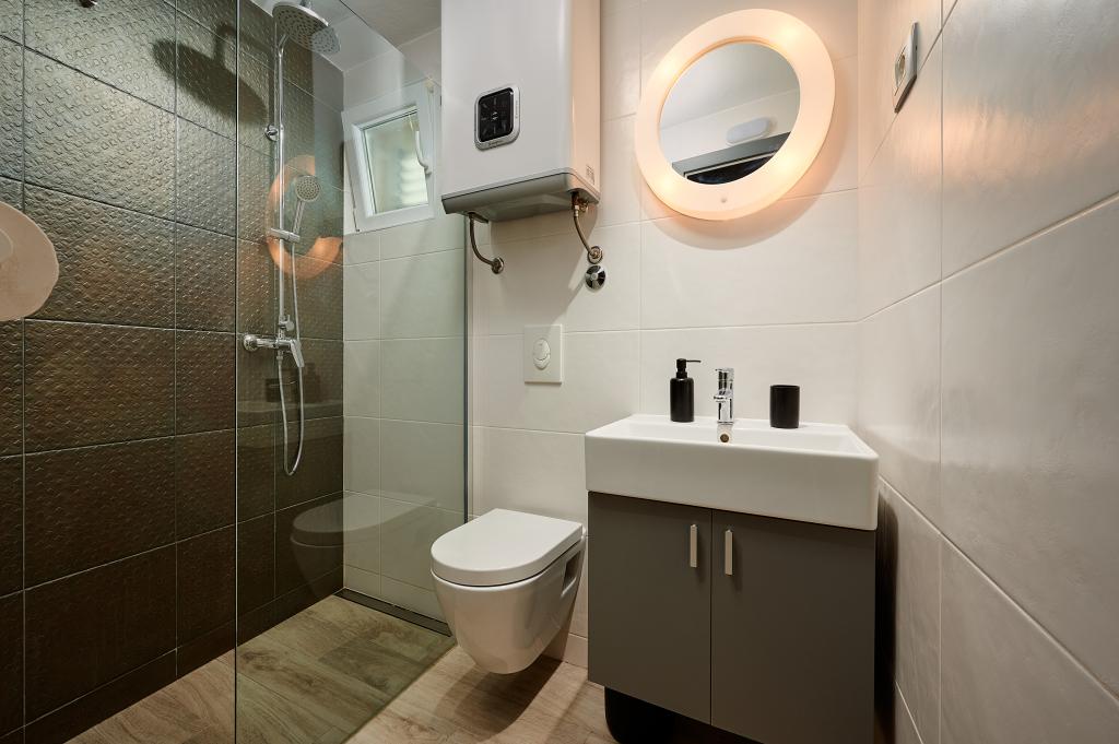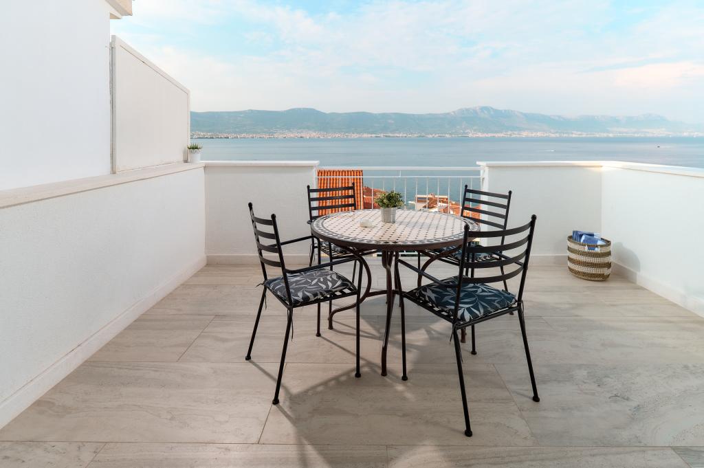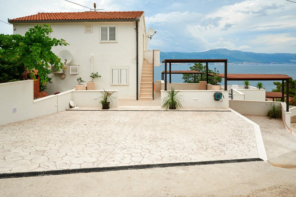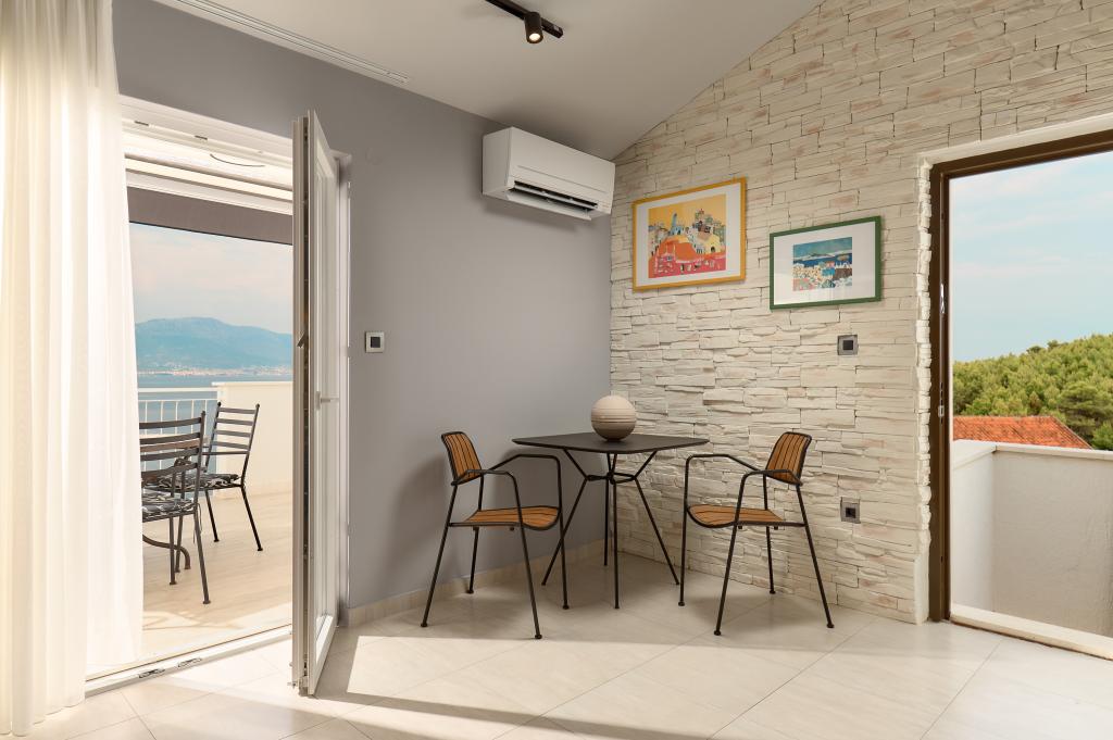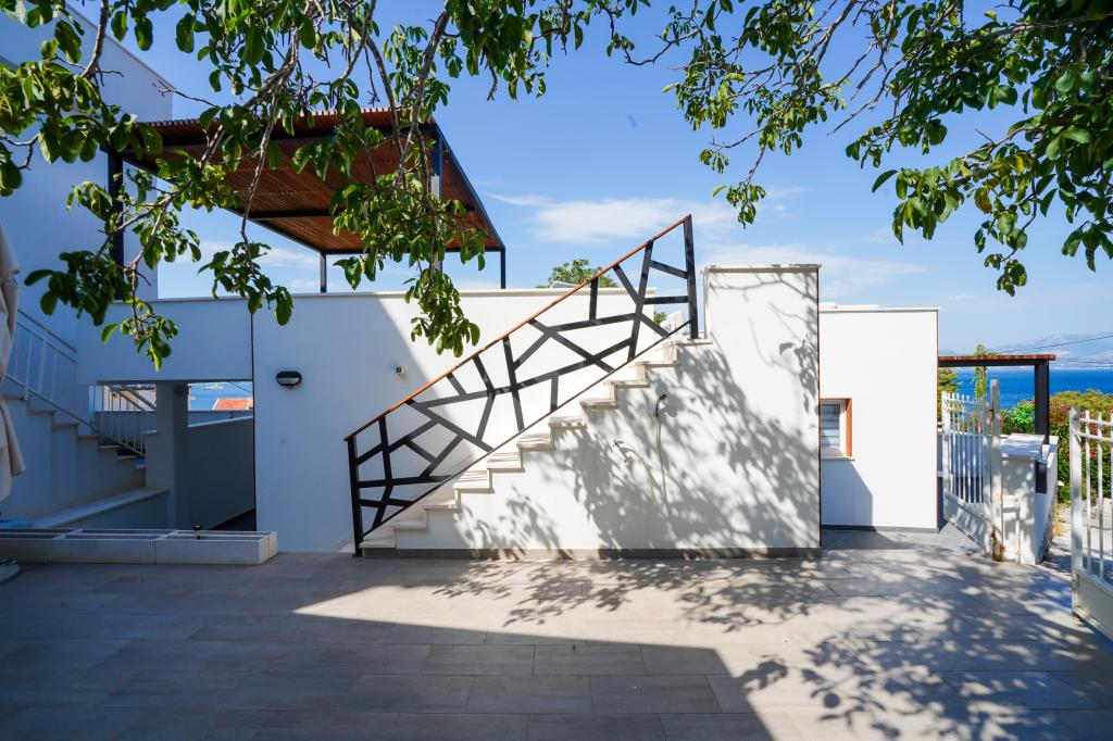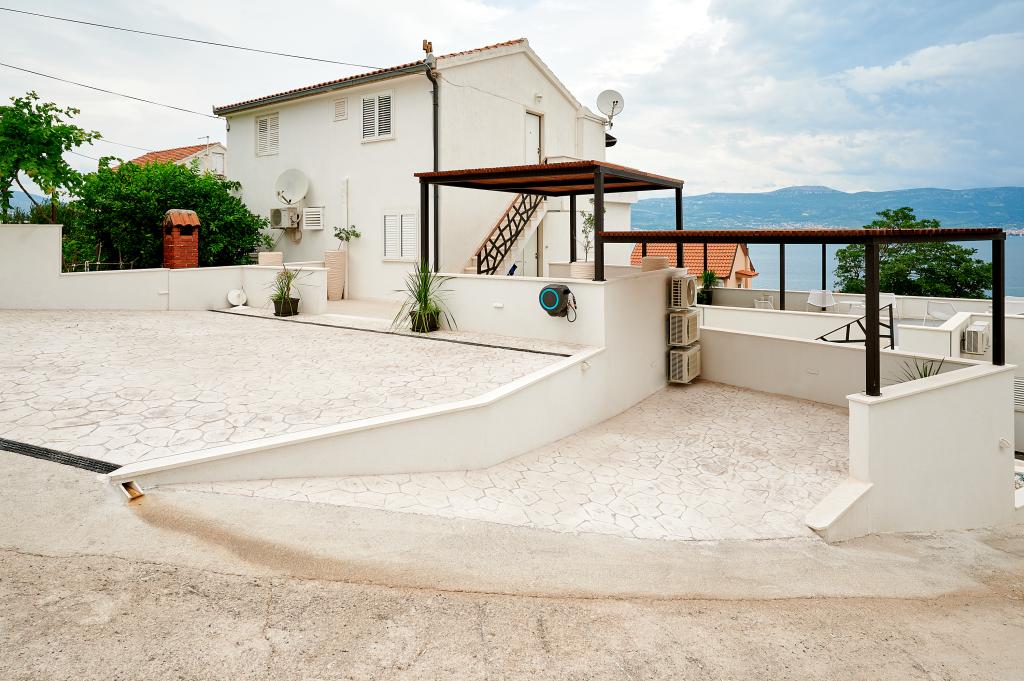 Bienvenue dans nos magnifiques appartements Quinn Tiger, Rustica et Sky, situés dans un quartier calme de Slatina sur l'île de Čiovo. Elles constituent une destination idéale pour des vacances reposantes au bord de la mer et à proximité de sites culturels et historiques. Quinn Tiger se distingue par son design sophistiqué et ses détails luxueux. L'intérieur spacieux et la combinaison de tons chauds et audacieux en font un choix idéal pour ceux qui veulent quelque chose de spécial. Il partage une grande terrasse commune avec l'appartement Rustica, parfaite pour profiter du café du matin ou pour socialiser en soirée. Rustica propose un mélange de style moderne et traditionnel avec des détails en bois qui créent une atmosphère chaleureuse et chaleureuse. Sky respire l'élégance et le design contemporain. Des tons clairs et un espace aéré offrent une atmosphère idéale pour la détente. En plus de la terrasse commune, il offre également sa propre terrasse séparée pour une intimité totale. Tous les appartements sont situés dans une maison privée, assurant calme et tranquillité, à seulement 100 m de la plage, des commerces, des restaurants et des bars de plage. La ville historique de Trogir, sous la protection de l'UNESCO.