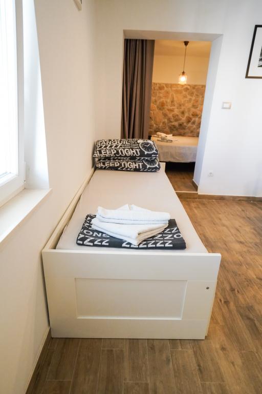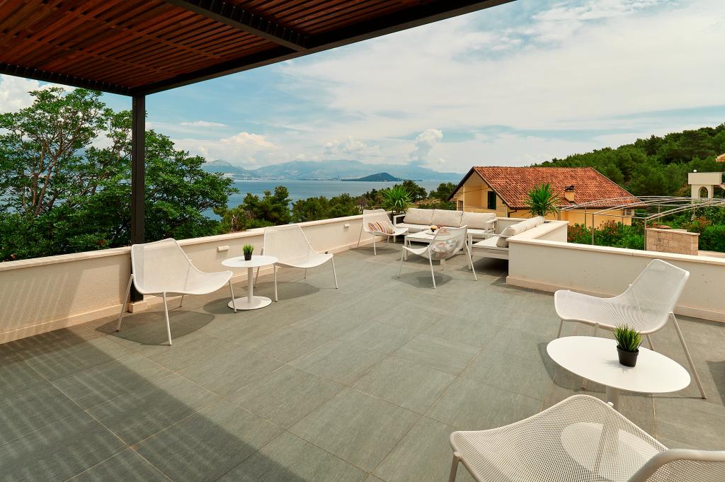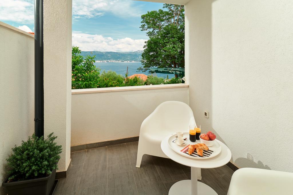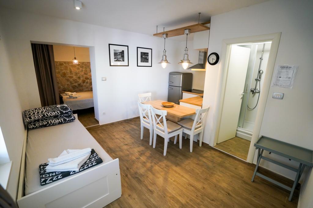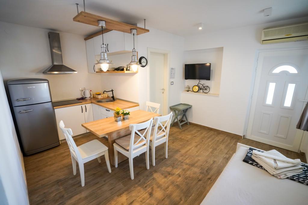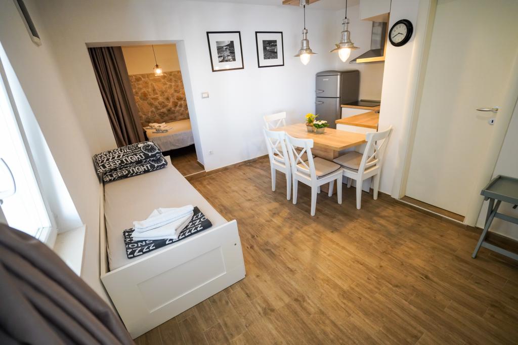 Bienvenue dans nos magnifiques appartements Quinn Tiger, Rustica et Sky, situés dans un quartier calme de Slatina sur l'île de Čiovo. Elles constituent une destination idéale pour des vacances reposantes au bord de la mer et à proximité de sites culturels et historiques. Quinn Tiger se distingue par son design sophistiqué et ses détails luxueux. L'intérieur spacieux et la combinaison de tons chauds et audacieux en font un choix idéal pour ceux qui veulent quelque chose de spécial. Il partage une grande terrasse commune avec l'appartement Rustica, parfaite pour profiter du café du matin ou pour socialiser en soirée. Rustica propose un mélange de style moderne et traditionnel avec des détails en bois qui créent une atmosphère chaleureuse et chaleureuse. Sky respire l'élégance et le design contemporain. Des tons clairs et un espace aéré offrent une atmosphère idéale pour la détente. En plus de la terrasse commune, il offre également sa propre terrasse séparée pour une intimité totale. Tous les appartements sont situés dans une maison privée, assurant calme et tranquillité, à seulement 100 m de la plage, des commerces, des restaurants et des bars de plage. La ville historique de Trogir, sous la protection de l'UNESCO.