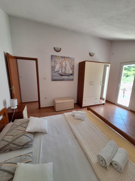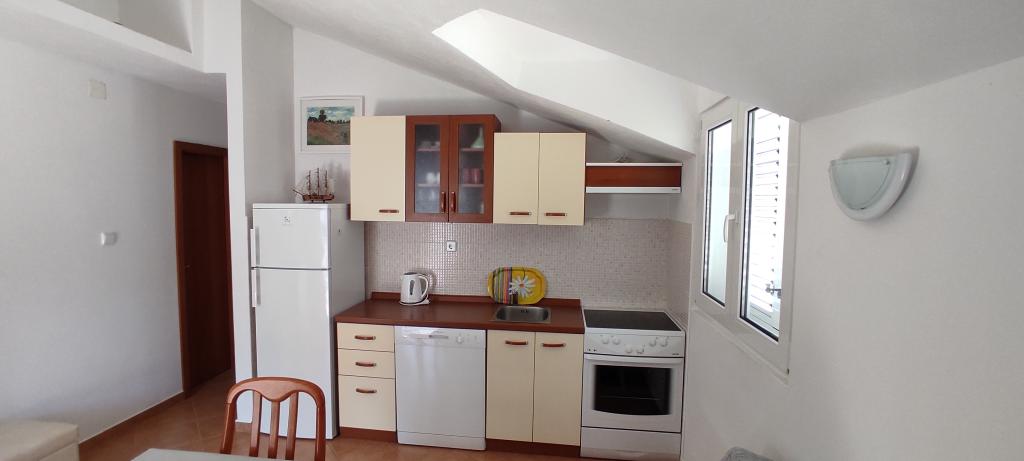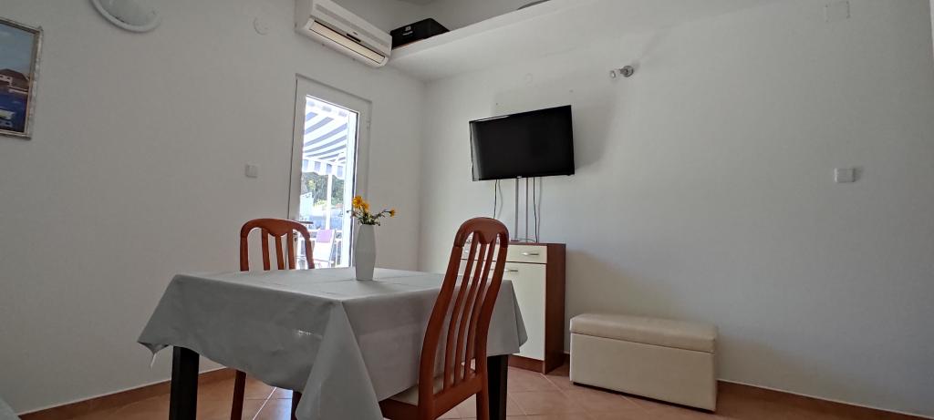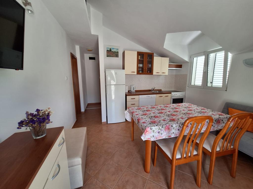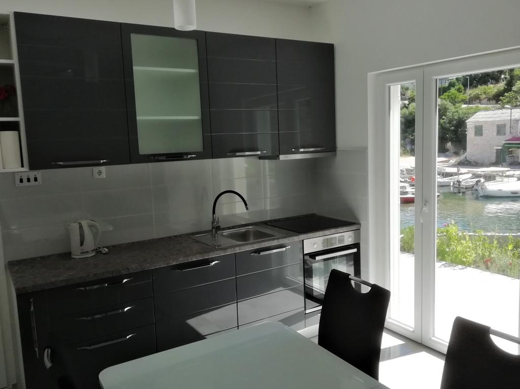 Nos appartements sont situés à Donja Krušica, sur l'île de Šolta. L'un des appartements est situé au rez-de-chaussée et l'autre au premier étage de la maison, en première ligne de mer, dans une baie tranquille. La plage la plus proche est juste à côté de la maison, et la seconde, accessible en 5 minutes à pied, vous permettra de profiter d'une mer cristalline. L'appartement du premier étage comprend une chambre, une cuisine équipée avec coin repas, une salle de bain et une agréable terrasse. Il est également équipé de la climatisation, d'une télévision et d'un lave-linge. L'appartement du rez-de-chaussée comprend également une chambre, une cuisine équipée avec coin repas et une salle de bain. La terrasse de l'appartement du rez-de-chaussée offre une vue sur la mer. Il est également équipé d'une télévision avec Netflix. L'appartement du rez-de-chaussée est également équipé de la climatisation et d'un ventilateur de plafond.