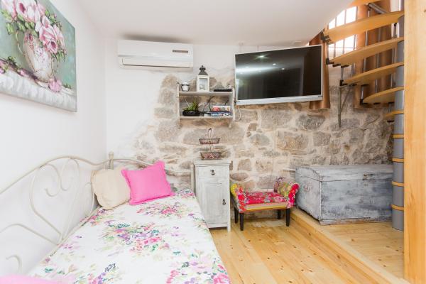 Dama est une petite maison dalmate située en centre-ville, dans un endroit calme. La maison peut accueillir 3 personnes. Elle se compose d'un rez-de-chaussée avec une cuisine, un séjour et une salle de bain, puis d'un grenier bas avec une chambre et d'un jardin avec un canapé. L'hôte n'habite pas sur place, mais est toujours à votre disposition. Venez passer des vacances inoubliables. Nous n'avons pas de place de parking privée ! Parking public à proximité immédiate de la maison.