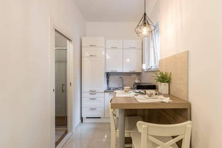 Studio récemment rénové à Split, Bačvice. Il est situé à proximité immédiate de la plage la plus célèbre de la ville. Toutes les installations nécessaires se trouvent à une distance allant jusqu'à 100 m. L'établissement est situé à 5 minutes à pied du front de mer et du palais de Dioclétien, qui vaut vraiment le détour. Devant l'appartement se trouve une grande terrasse à utiliser. La place de parking est à côté du bâtiment sur un espace public.