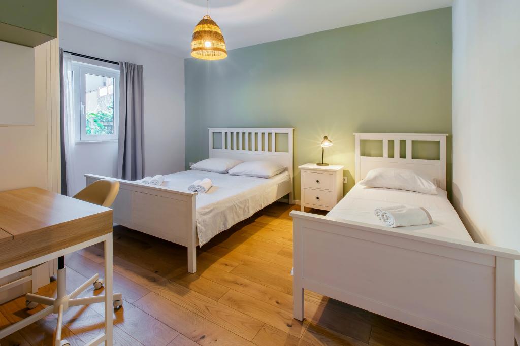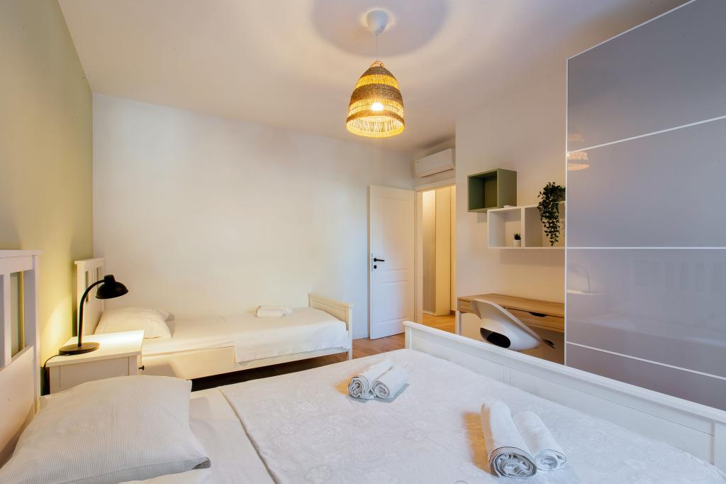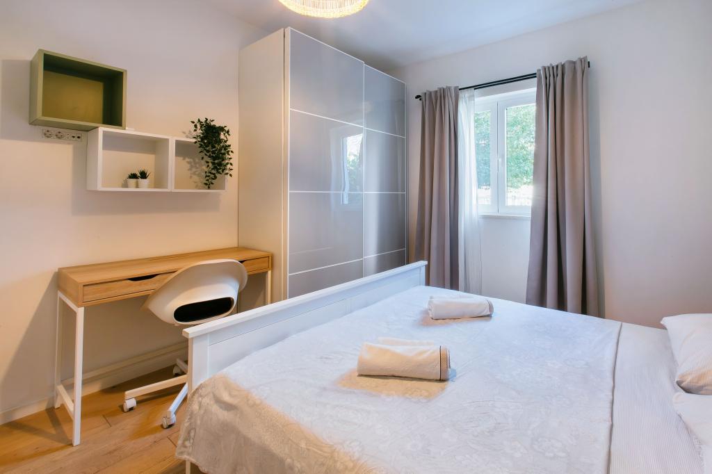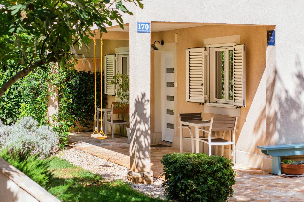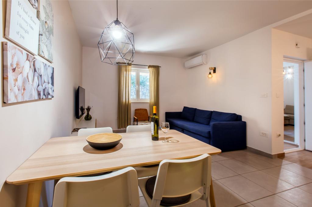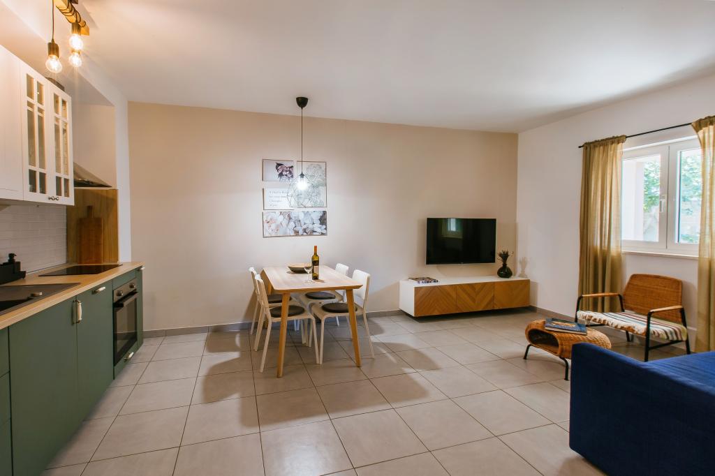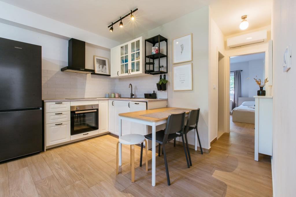 Bienvenue dans notre appartement moderne et confortable à Split ! Situé au rez-de-chaussée d'une maison privée dans un quartier calme et sûr de la ville, notre appartement est le choix idéal pour un séjour relaxant, que vous veniez pour des vacances, du tourisme ou du télétravail. À propos de l'appartement Moderne, spacieux et entièrement équipé Climatisation dans le salon et la chambre Wi-Fi ultra-rapide – idéal pour télétravailler ou regarder des films Terrasse privée avec vue sur les montagnes – pour le calme et la détente Lave-linge – un plus pour les longs séjours Cuisine et salon Cuisine entièrement équipée : lave-vaisselle, four, plaque de cuisson, réfrigérateur, bouilloire et ustensiles Salon avec TV écran plat Salle de bain avec douche à l'italienne et sèche-cheveux Draps et serviettes propres inclus Parking et jardin Parking privé : garage ou espace extérieur dans la cour Pelouse et espace en terre pour se détendre en plein air