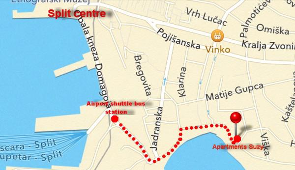 Les appartements sont situés à 20 mètres de la célèbre plage de Bačvice. Il se trouve à 5 minutes à pied du port des ferries, de la gare routière et de la gare ferroviaire, et à 10 à 15 minutes à pied du centre de Split. A proximité de l'hôpital Firule, des courts de tennis, de nombreux restaurants et bars le long de la promenade. Un parking privé est disponible sur demande. Nous possédons une place de parking.