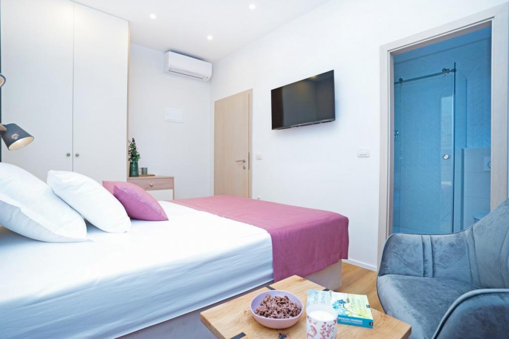 Très bien situé, à quelques minutes à pied de la vieille ville et du front de mer, dans une rue calme et paisible. La chambre est propre et soignée, avec une salle de bain avec une douche à effet pluie et une douche normale (à main), une grande et une petite serviette pour chaque personne. Le lit est king-size, grand et confortable. Excellent mini-réfrigérateur, grande télévision intelligente, bonne connexion WiFi gratuite. Je recommande cette chambre dans laquelle je reviendrai certainement et passerai un bon moment à Split.