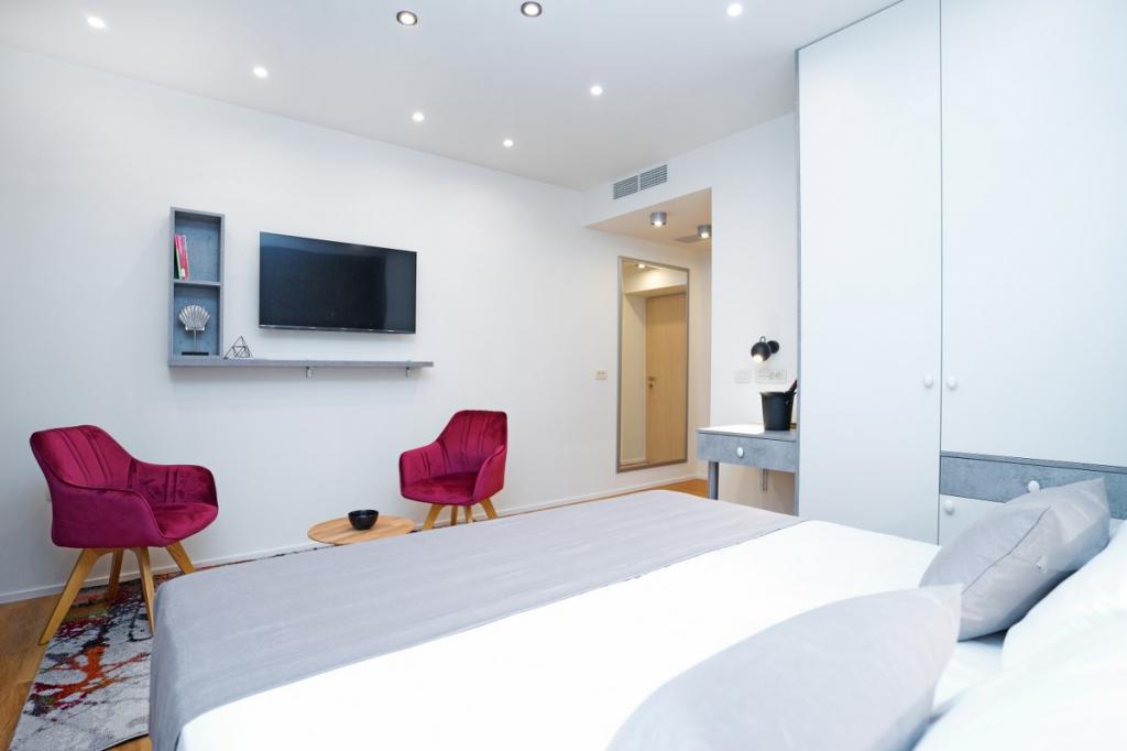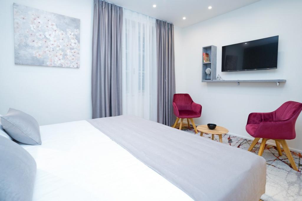 L'emplacement est excellent, dans une rue calme et à proximité du palais de Dioclétien, à 2-3 minutes à pied. La chambre est très propre avec un lit king-size confortable, une décoration design et une belle salle de bain, équipée d'une smart TV, du Wi-Fi rapide, d'une machine à expresso, d'un coffre-fort pour le rangement, d'un minibar, etc... Quand je reviendrai à Split, je resterai ici