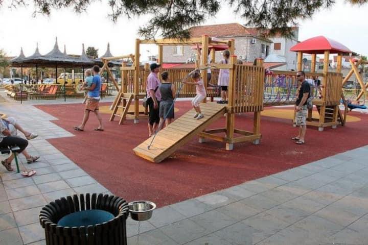L'établissement dispose d'une place de parking gratuite. Le centre est d'env. 200 mètres, qui regorge de cafés et de restaurants. Il y a aussi un magasin, un kiosque vendant des produits de boulangerie, un kiosque à journaux vendant des glaces, un trampoline, une aire de jeux pour enfants, un terrain de football et de basket-ball, un boulodrome et d'autres installations. Là, vous pouvez louer une banque ou payer un voyage organisé vers les îles voisines telles que Prvić, Zlarina. Les parcs nationaux Kornati et Krka sont à seulement 20 minutes en voiture et la ville de Šibenik à environ 10 minutes en voiture. 15 minutes.