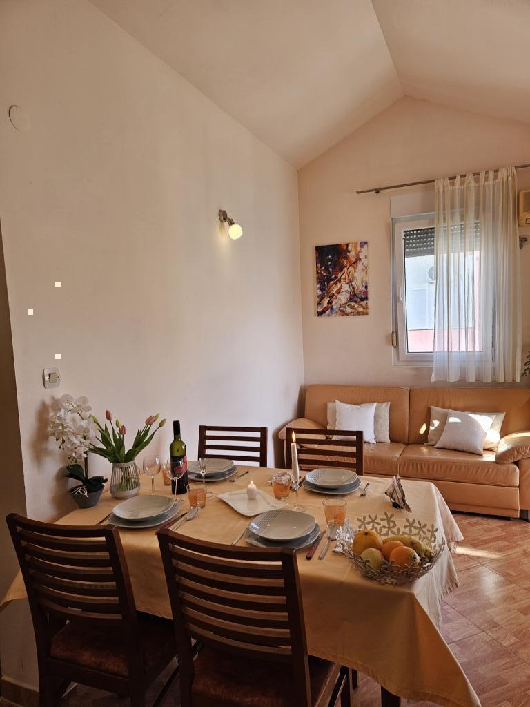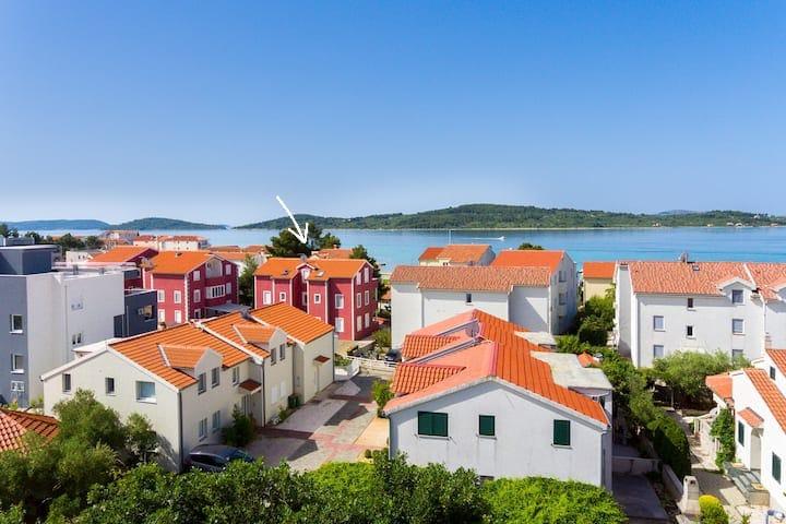 Appartement neuf et moderne dans un endroit calme à Srima près de Vodice avec vue sur la mer. La plage magnifiquement aménagée est à env. 100 mètres. L'installation est située à env. A 200 mètres du centre du village et à 25 minutes à pied (le long de la promenade) de la ville de Vodice.