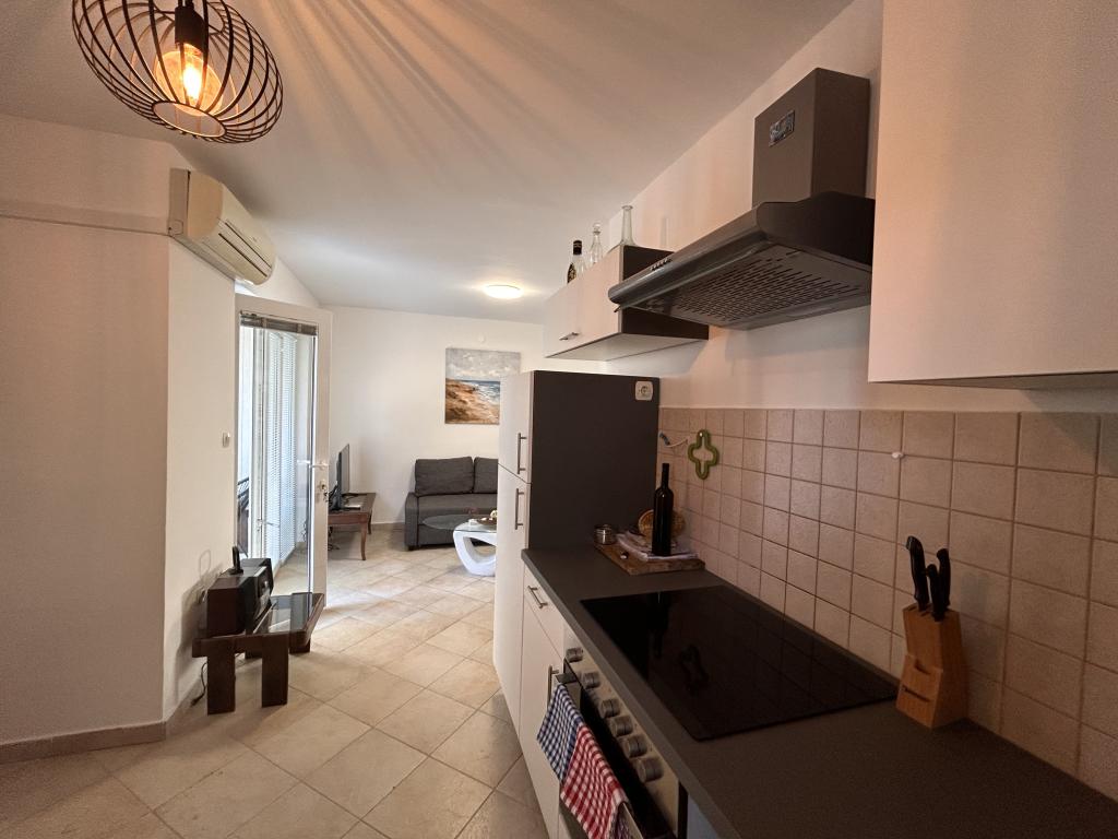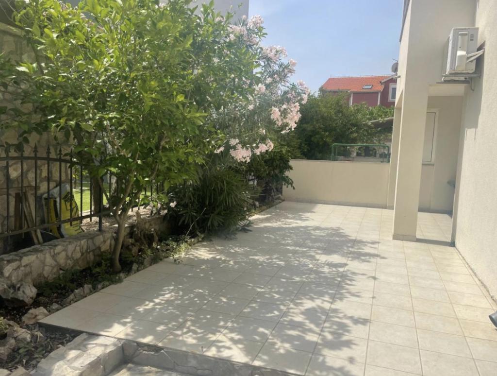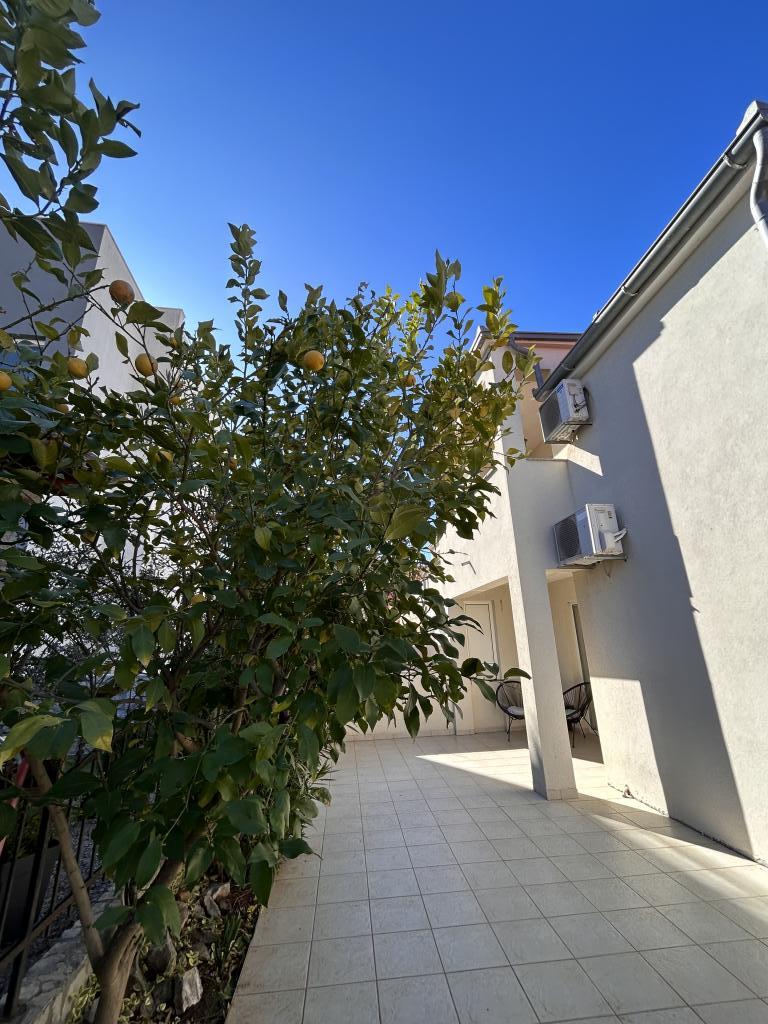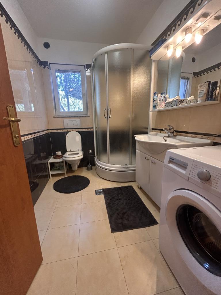 Appartement neuf et moderne situé dans le paisible village de Srima, près de Vodice. La plage magnifiquement décorée, à seulement 100 mètres, est labellisée Pavillon Bleu, un prix international garantissant la propreté de la mer et la préservation de l'environnement. La propriété est située à 200 mètres du centre du village et à 25 minutes à pied (par la promenade du bord de mer) de la ville de Vodice. Situé au rez-de-chaussée, il dispose d'une grande terrasse avec barbecue et balançoire. Il dispose également d'un jardin fleuri, d'une grande table à manger et de meubles de jardin pour se détendre. La propriété comprend une cuisine, un salon (TV LG, canapé-lit), une salle de bains et deux chambres. La cuisine est neuve et équipée de tous les appareils électroménagers nécessaires (micro-ondes, cafetière Dolce Gusto, grille-pain, bouilloire, etc.). Bienvenue !
