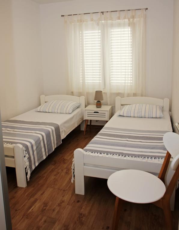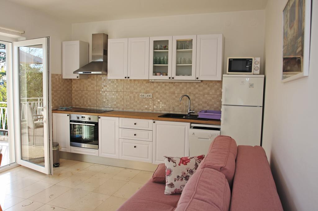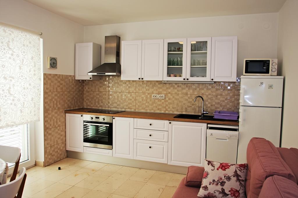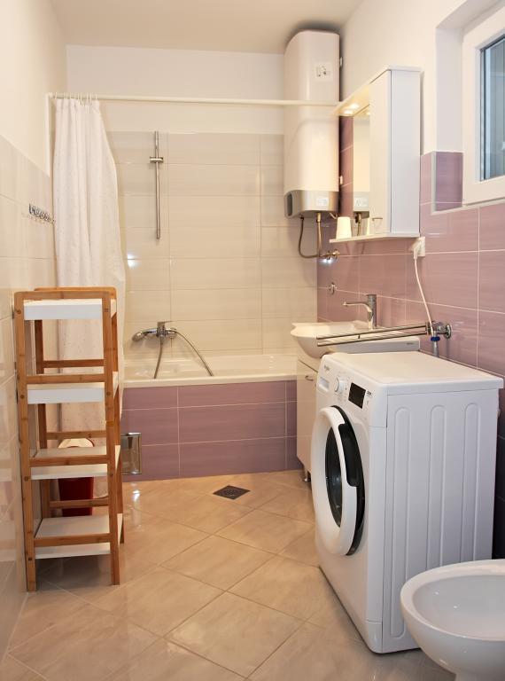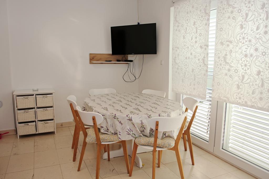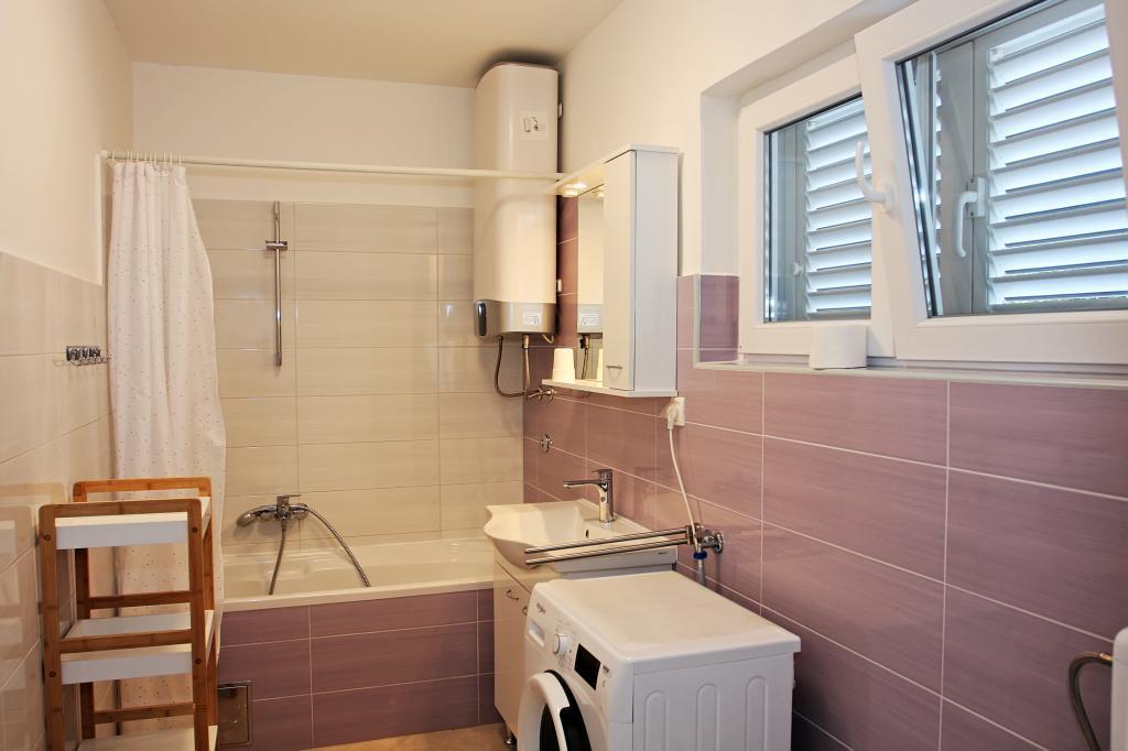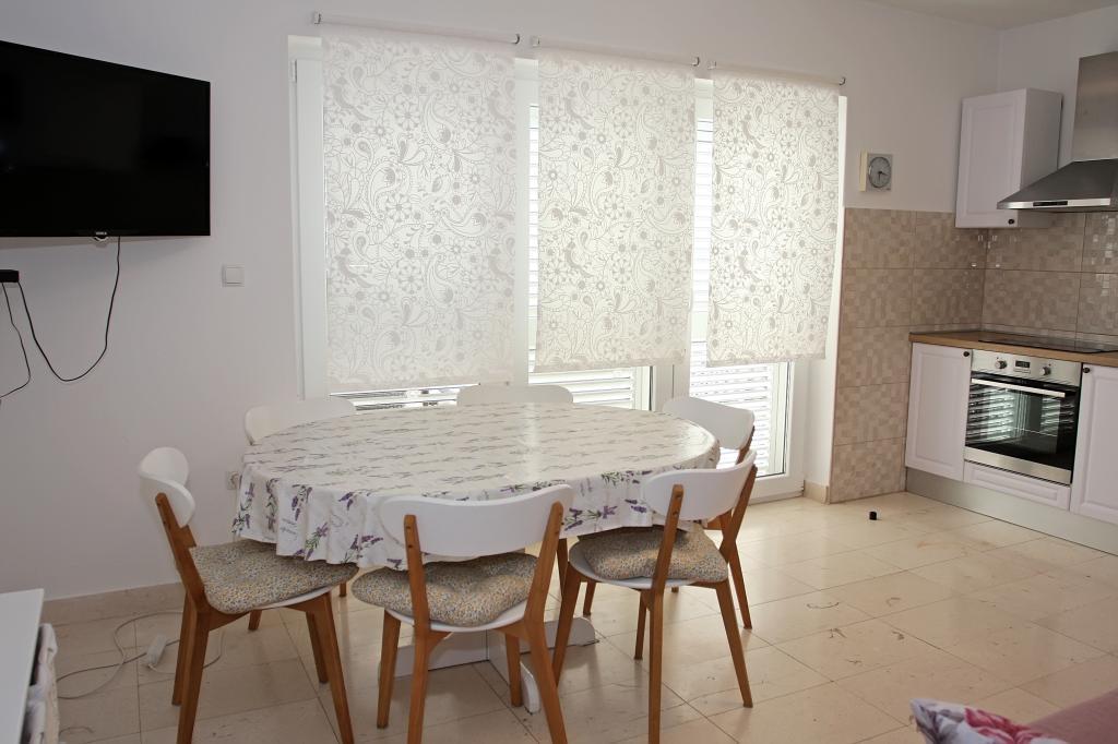 Appartement de trois pièces nouvellement construit au rez-de-chaussée, première rangée de la mer. L'appartement comprend une cuisine avec salle à manger et salon, trois chambres à coucher, deux salles de bain avec toilettes, un autre WC séparé, une grande terrasse et un autre balcon. Deux chambres ont des lits doubles et une avec deux lits séparés. Dans le salon, il y a un canapé à trois places qui s’étend dans un lit pour deux personnes. La cuisine est équipée avec lave-vaisselle, micro-ondes, four, réfrigérateur avec congélateur. Une salle de bain a une machine à laver. Il y a deux places de parking dans la cour et un barbecue. La plage est située juste en face de la maison.