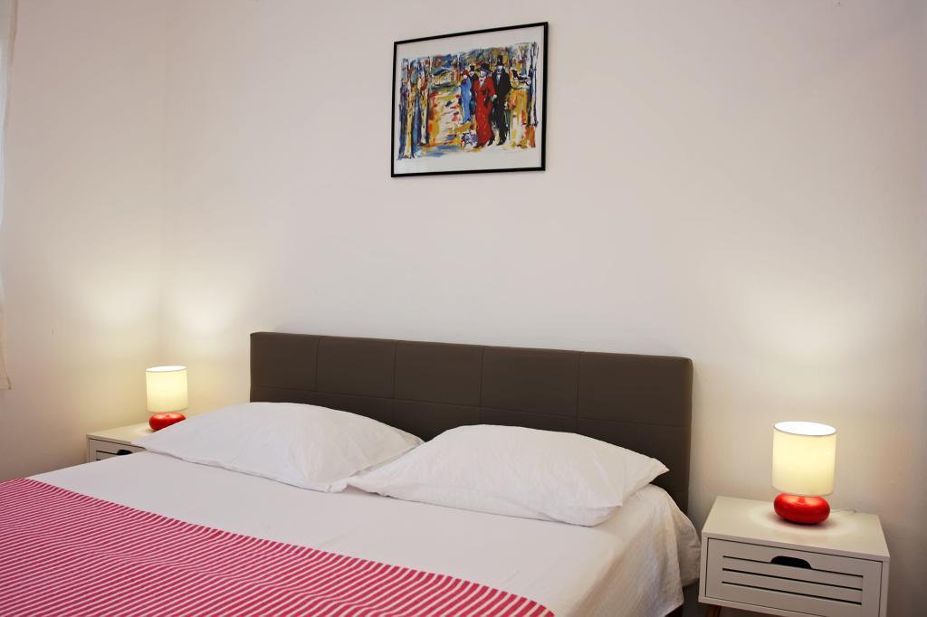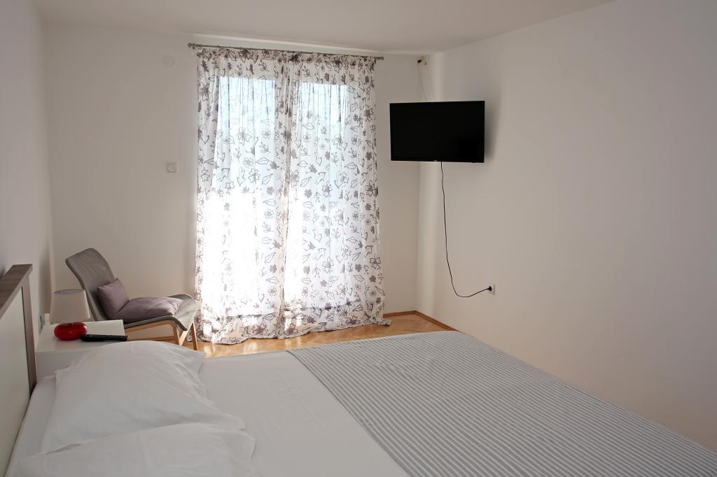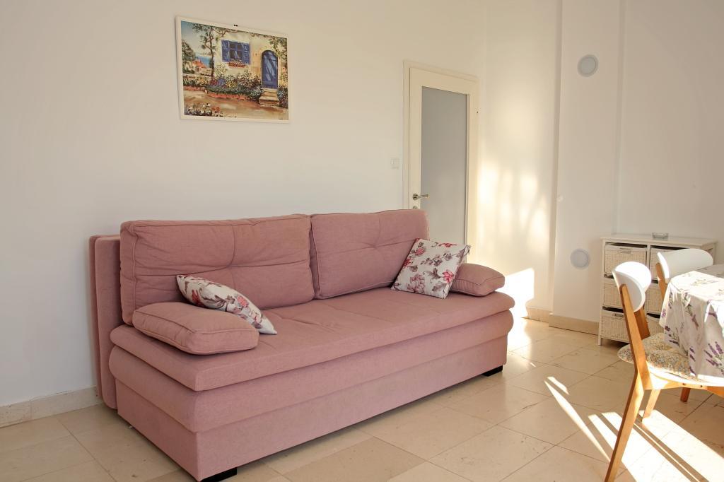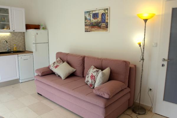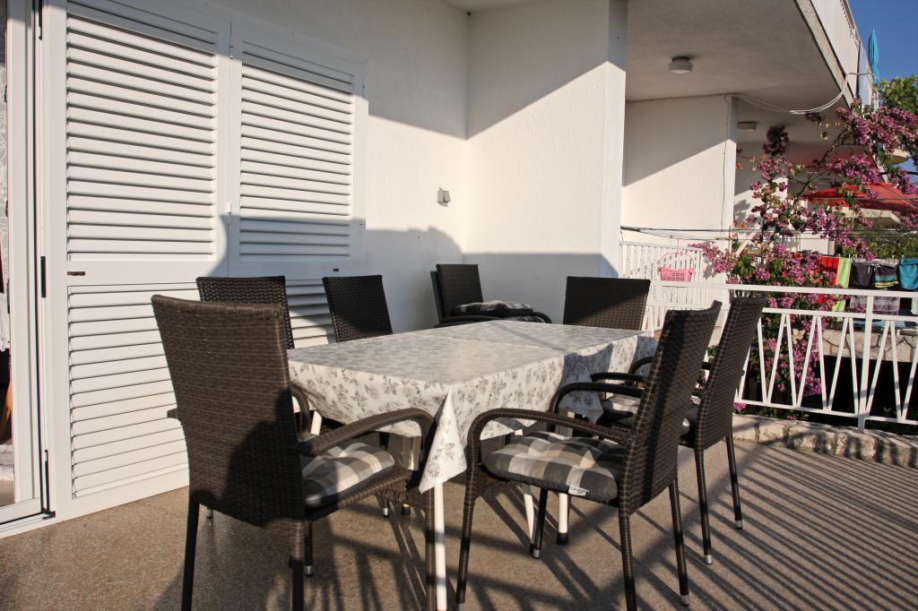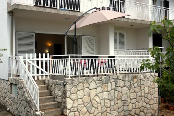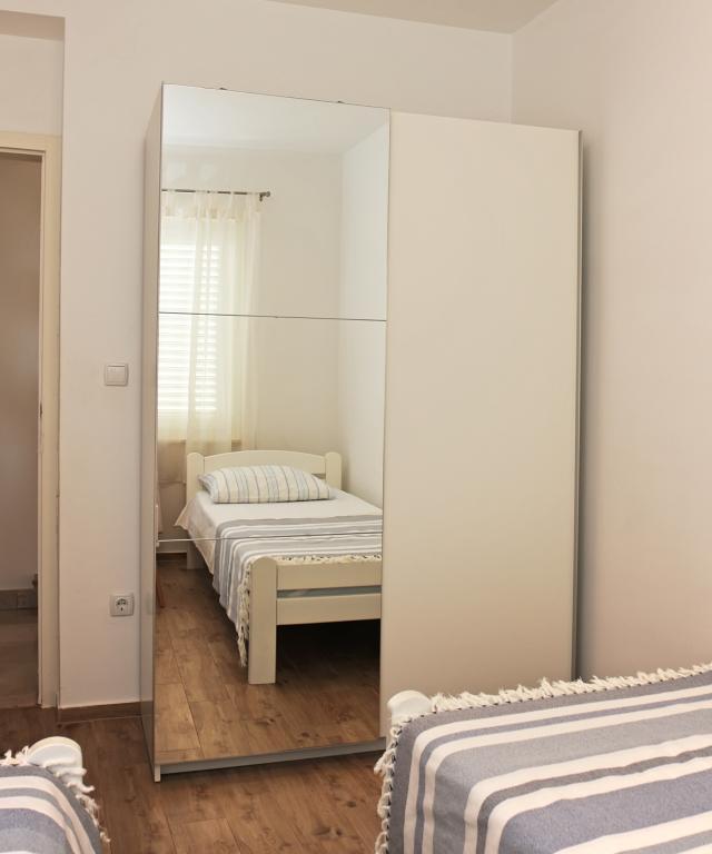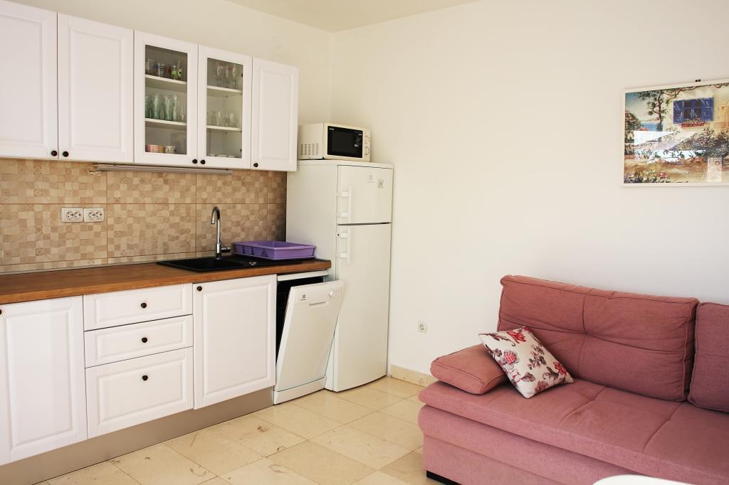 Appartement de trois pièces nouvellement construit au rez-de-chaussée, première rangée de la mer. L'appartement comprend une cuisine avec salle à manger et salon, trois chambres à coucher, deux salles de bain avec toilettes, un autre WC séparé, une grande terrasse et un autre balcon. Deux chambres ont des lits doubles et une avec deux lits séparés. Dans le salon, il y a un canapé à trois places qui s’étend dans un lit pour deux personnes. La cuisine est équipée avec lave-vaisselle, micro-ondes, four, réfrigérateur avec congélateur. Une salle de bain a une machine à laver. Il y a deux places de parking dans la cour et un barbecue. La plage est située juste en face de la maison.