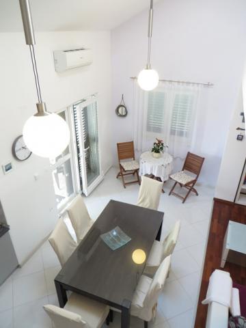 Appartement contemporain et moderne au premier étage d'une maison familiale dans un petit endroit calme Srima. Deuxième rangée de la mer, à 140 m de la belle plage de galets (drapeau bleu). L'appartement dispose de 75 m2 (toilette et salle de bain, deux chambres, cuisine, salle à manger et salon) galerie avec salle de bain et toilette et une terrasse semi-couverte de 14 m2. Le nombre de personnes estimé est de 6 (chambres 4, galerie 2) Entièrement décoré avec des meubles et des équipements de qualité (TV satellite, Internet, TV LCD, radio, lave-vaisselle et lave-linge, sèche-cheveux, micro-ondes, chauffe-eau, 2 climatiseurs) sauront satisfaire les clients qui en veulent plus. En raison de sa taille, il est idéal pour deux familles. Srima est située près de la ville de Vodice, une célèbre station balnéaire avec toutes les installations nécessaires pour le repos et les loisirs et deux parcs nationaux : NP Kornati et NP Krka.