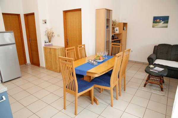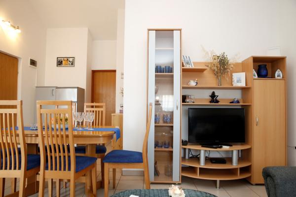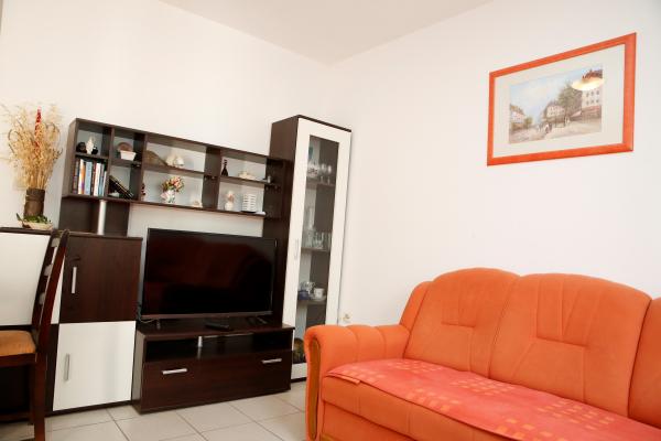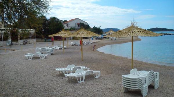 Il nous attendait, un gentilhomme extrêmement positif et amical, toujours disponible. L'appartement est très joliment décoré et régulièrement entretenu. L'appartement dispose d'une belle terrasse. Vous avez une voiture garée à l'ombre tout le temps. La plage est à environ 100 m de l'appartement et est parfait pour les familles avec enfants en bas âge, car il est dans la mer, ce qui est particulièrement agréable pour les enfants. En plus de la plage, il y a un restaurant, un magasin de lunch, où les rafraîchissements sont vendus, des glaces, et le matin, vous avez également du pain et d'autres pâtisseries. Il y a aussi une très belle aire de jeux pour enfants très proche, comme des magazines de journaux et des magasins. Vous pouvez rejoindre le centre de Vodice pour 5 minutes en voiture ou en voiture. 30 minutes à pied par la plage, mais si vous voulez vous prendre un mini-train.