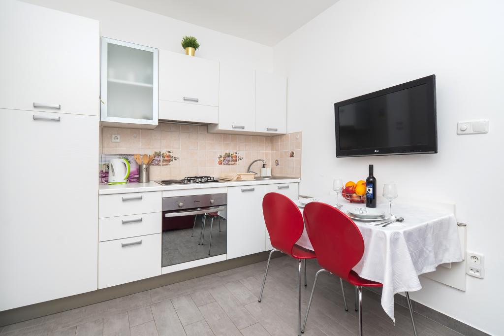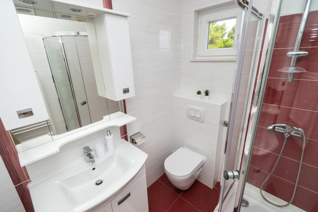 Nous vous recommandons ces appartements !!! Ils sont beaux, très bien équipée et propre. Dans un quartier calme et près de la mer .Krásná promener dans Vodice est juste 30min.pěšky. Il y a beaucoup de possibilités pour beaucoup děti- des cours de attractions sont des gens très gentils et c'est un salut.