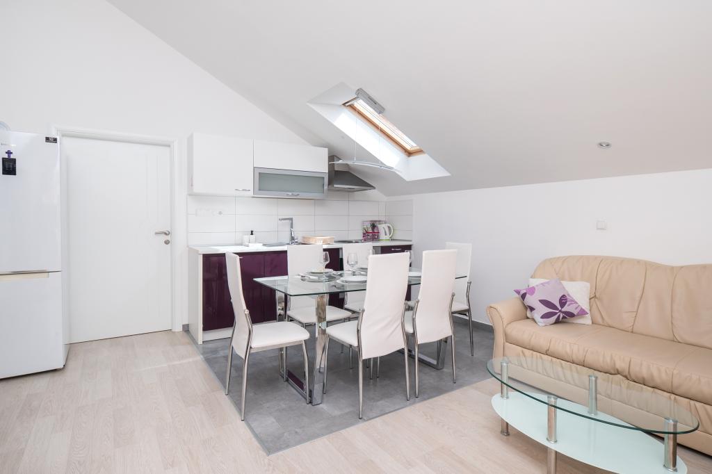 La maison est située dans un quartier calme. Hôte très chaleureux, serviable. L'appartement est très propre, soigné et moderne équipée - compatible avec descriptions et photos. L'équipement comprend tout le nécessaire pour un séjour agréable, l'appartement dispose d'un grand balcon avec une vue magnifique sur la mer et l'île. La plage est de galets, adapté pour les petits enfants. Nous remercions les hôtes pour leur accueil chaleureux, l'assistance (et délicieux légumes auprès des propriétaires de jardin).