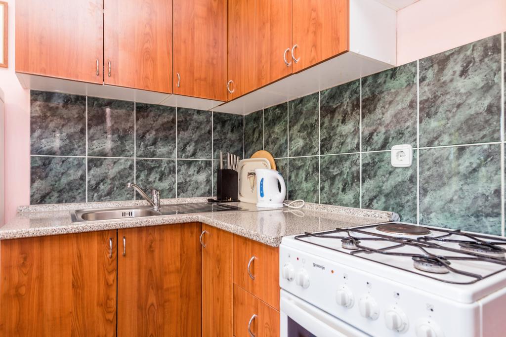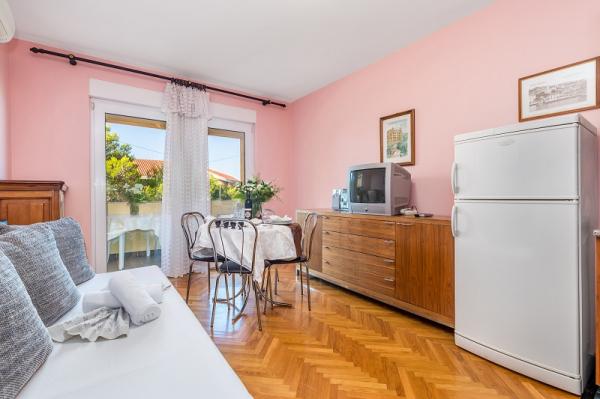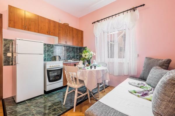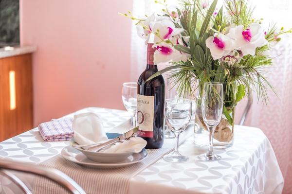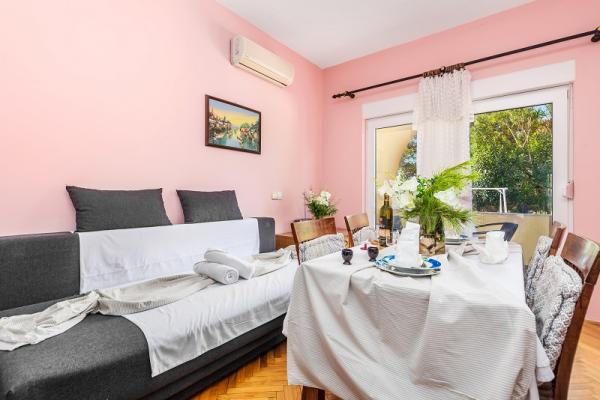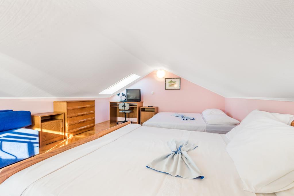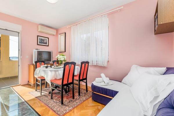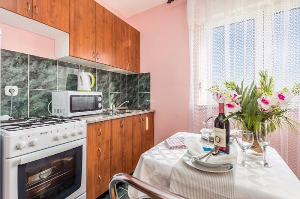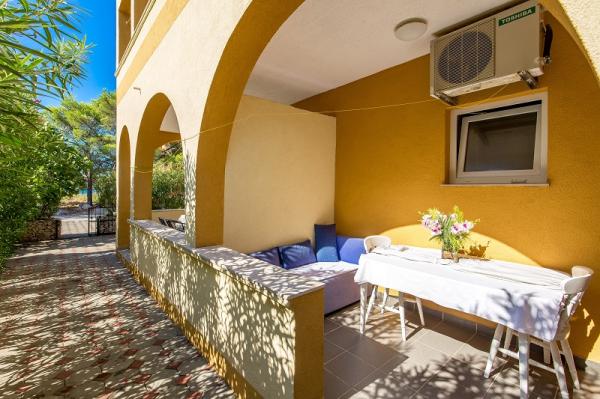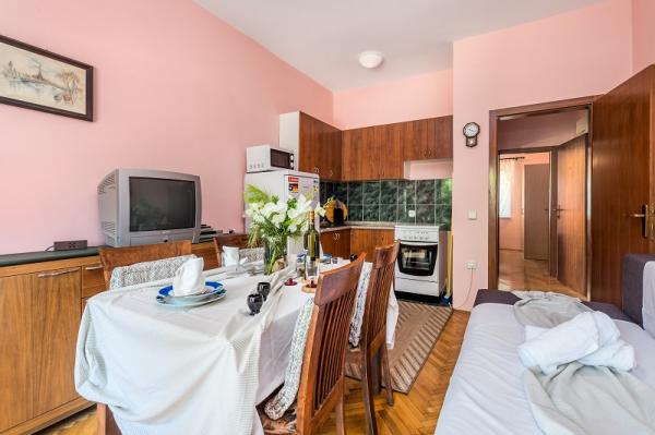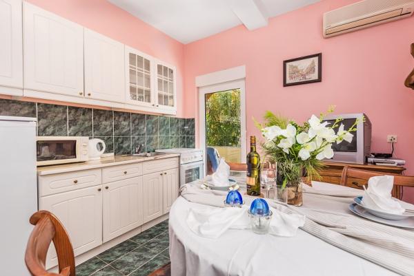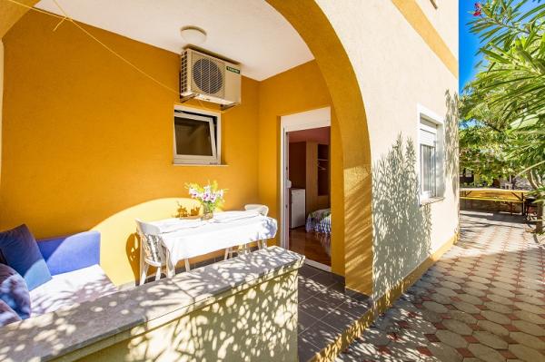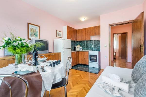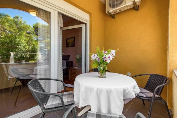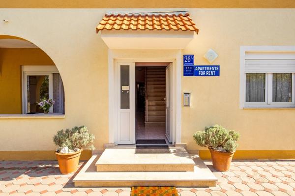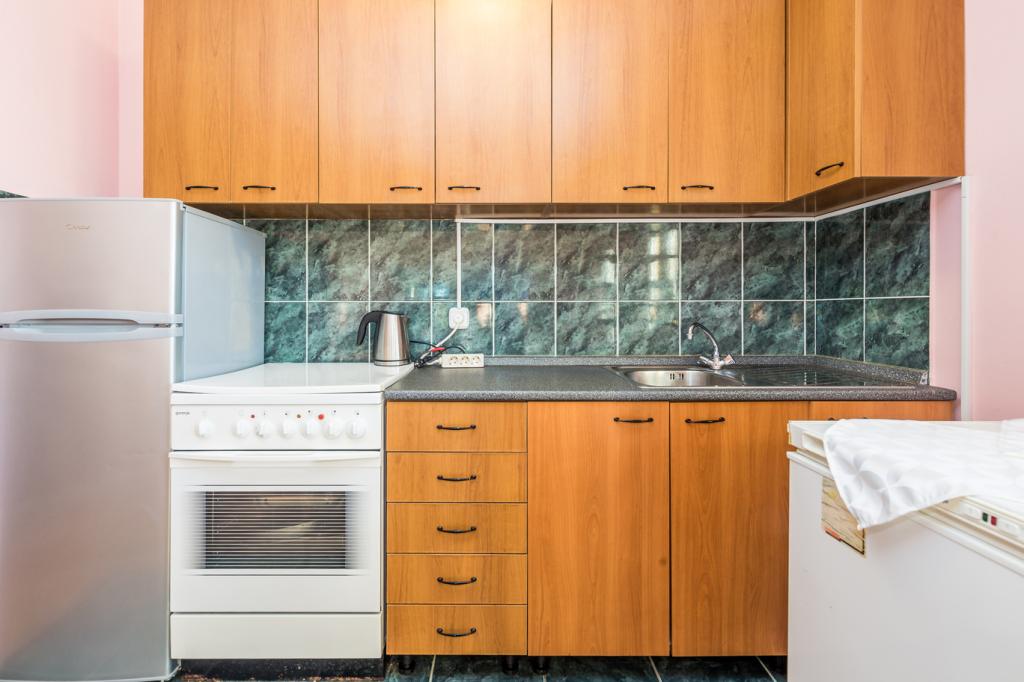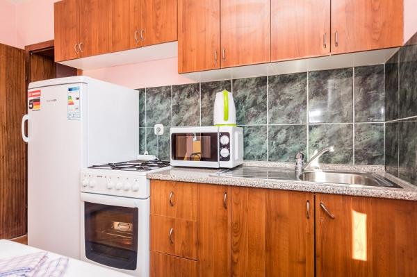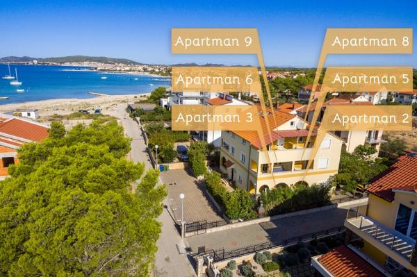 trois étoiles, première rangée de la mer (50 m de la plage de sable), appartements de deux et trois chambres à coucher, entièrement meublés (climatisation, tv, internet wifi). Chaque appartement dispose d'une cuisine, d'une salle de bains et d'un balcon avec vue sur la mer. Il y a aussi un barbecue en plein air.
