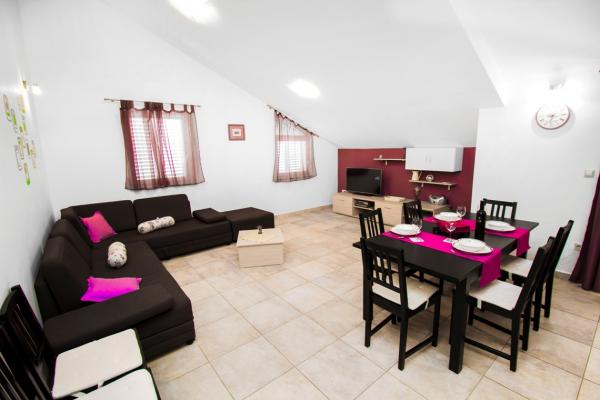 Si vous êtes à la recherche pour des vacances au calme, loin des hôtels et animée destinations touristiques, nous recommandons un séjour à Srima. Si vous êtes à la recherche, de divertissement ou une bonne nuit, vont à Vodice, un centre touristique célèbre. Nous pouvons vous offrir trois appartements de romarin, d'oliviers et de lavande vue sur la mer, parking privé, barbecue et accès Internet. Les appartements sont conçus pour 6 personnes 2, comprennent une salle de bains, WC, deux terrasses, trois chambres, un grand salon. La plage est à 4 minutes hoda.Nalazi dans un quartier calme idéal pour les enfants.