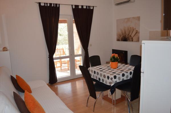 Les appartements MALI DVORI sont situés dans le pittoresque village touristique de Srima. Srima est un endroit agréable et paisible, idéal pour le tourisme en famille. La maison comprend 3 appartements. Modernes et fonctionnels, ils offrent tout le confort nécessaire pour un séjour agréable et sans souci. Chaque appartement dispose d'une entrée indépendante et d'une terrasse couverte donnant sur le jardin et en partie sur la mer. La plage de sable, à seulement 80 m de la maison, est idéale pour les jeunes enfants. Pour les amateurs de divertissement, Vodice, célèbre station touristique, se trouve à seulement 3 km.