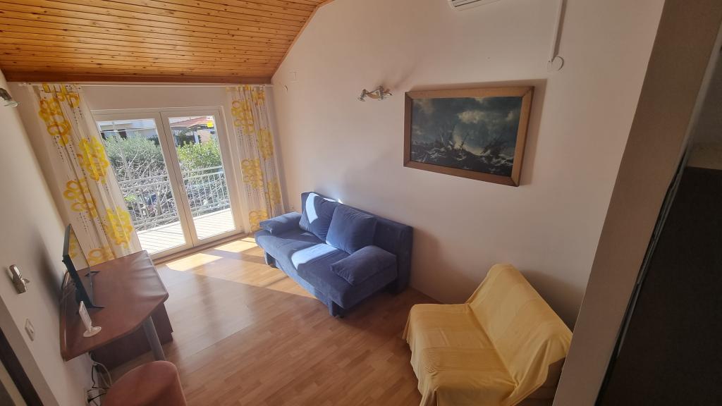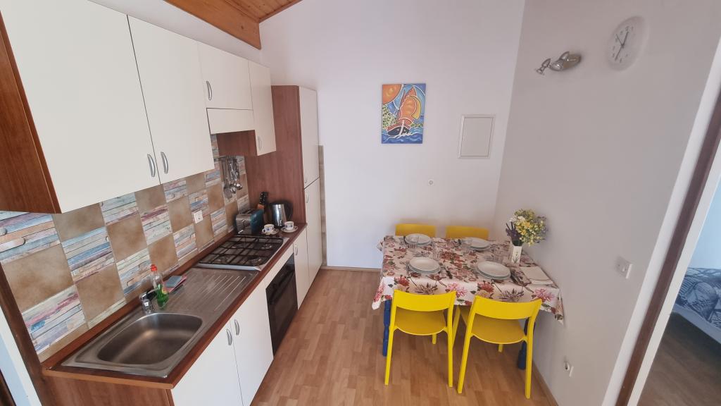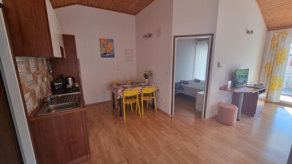 Les appartements se situent dans le quartier de Srima, à Vodice. Nous proposons trois appartements : deux appartements de deux pièces au premier étage et un studio au rez-de-chaussée. Tous les appartements sont climatisés et disposent d'une place de parking ombragée. Le jardin comprend un barbecue et une aire de jeux pour enfants. La maison se trouve dans une rue calme, garantissant tranquillité et intimité. La plage est à 200 m et les commerces à 150 m. Le centre-ville de Srima est à 500 m et le centre de Vodice est à environ 2 km, soit 20 minutes à pied.