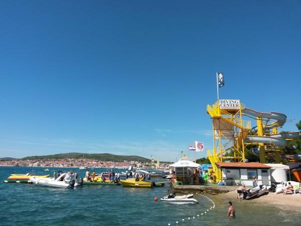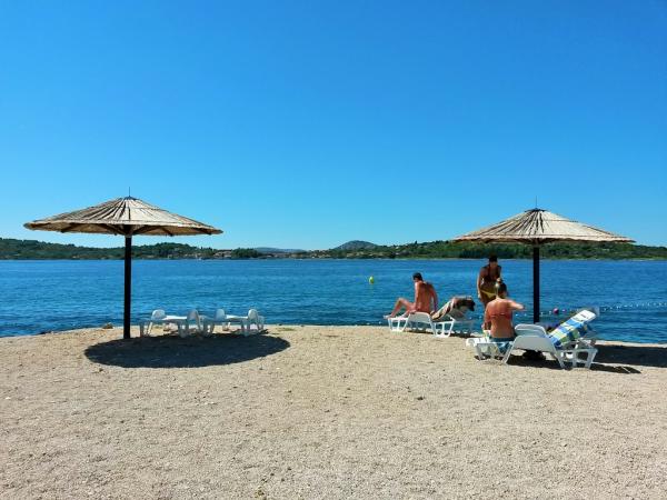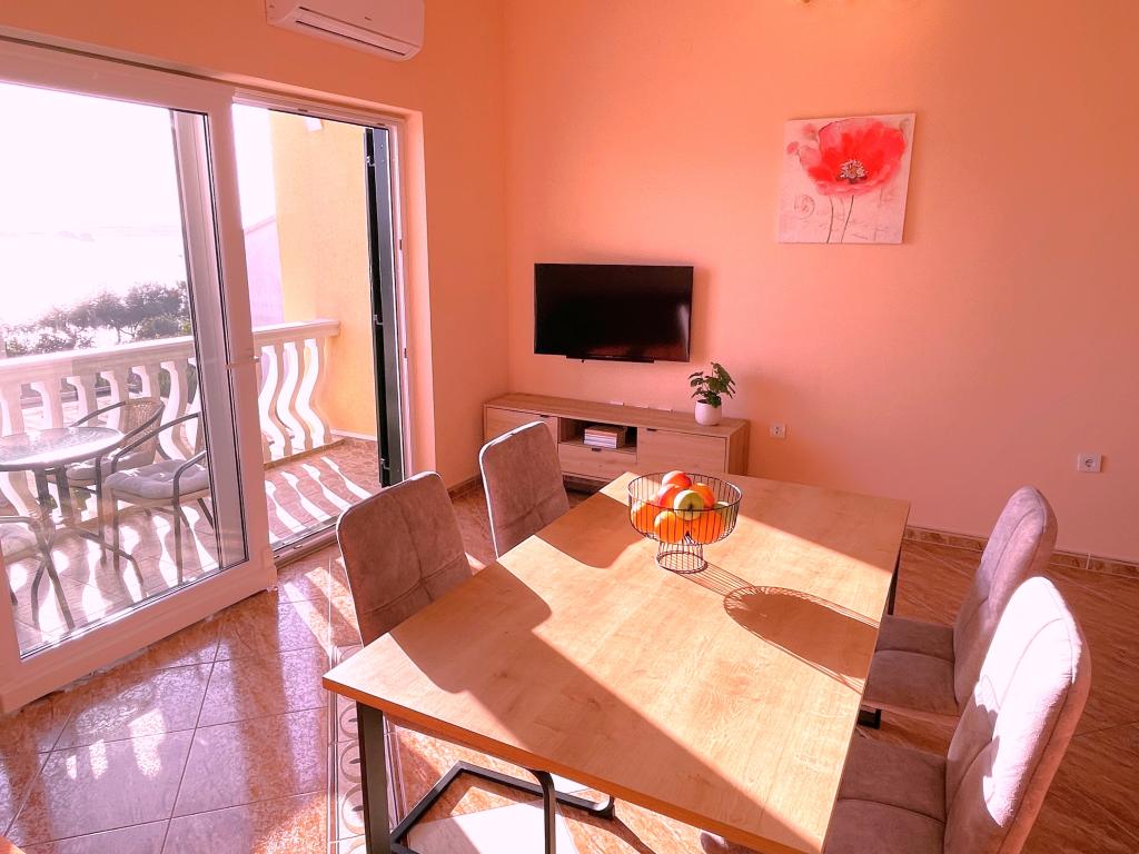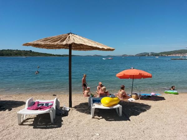 Taxe de sejour est inclus dans le prix.L'emplacement de l'appartement est génial! 60 mètres de la plage. Malheureusement, les chiens n'étaient pas autorisés sur la plage, nous sommes donc obligés d'aller ailleurs tous les jours. Restaurants et boulangerie à proximité, vous marchez environ 200 m L'appartement est très propre et le propriétaire et sa famille nous ont reçus très sympathiques! La vue depuis le balcon est magnifique. Il y a aussi un point de prélèvement d'eau à l'extérieur dans le parking, très avantageux!