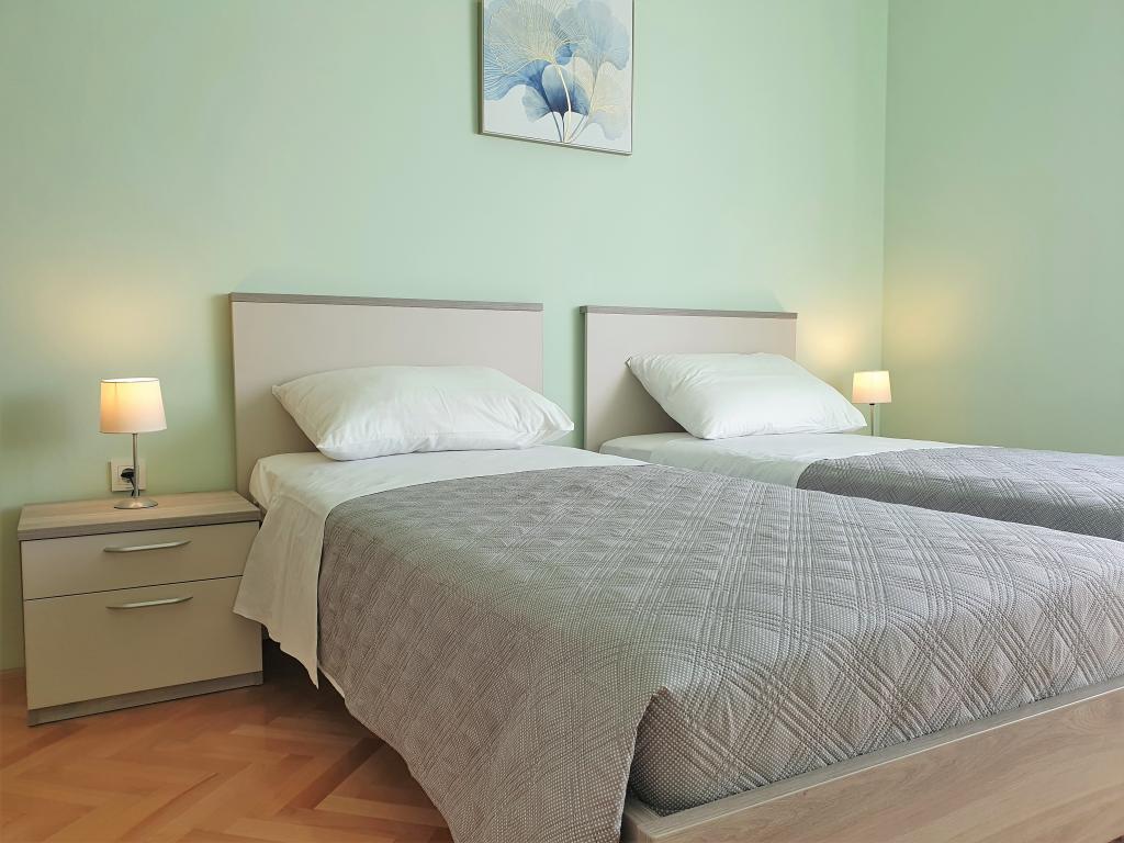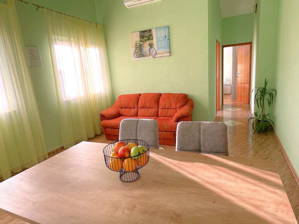 Le prix de l'appartement est valable pour 4 personnes par jour. Le prix comprend : une place de parking, le nettoyage final, tous les frais généraux, les draps et les serviettes, l'utilisation de la climatisation, la taxe de séjour. Le lit pour la 5ème personne est facturé 10 EUR supplémentaires (les enfants de moins de 3 ans sont gratuits). Lors de la réservation, une caution de 100 EUR est versée, et le reste est payé à l'arrivée à l'appartement. Pour les locations de plus de deux semaines hors haute saison (juillet et août) nous accordons une remise supplémentaire sur les prix indiqués ! Nous attendons l'arrivée du client après 14h00 et le départ jusqu'à 09h00.