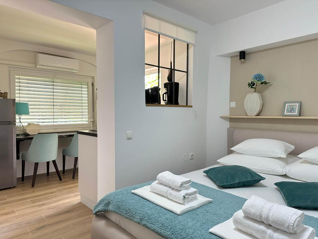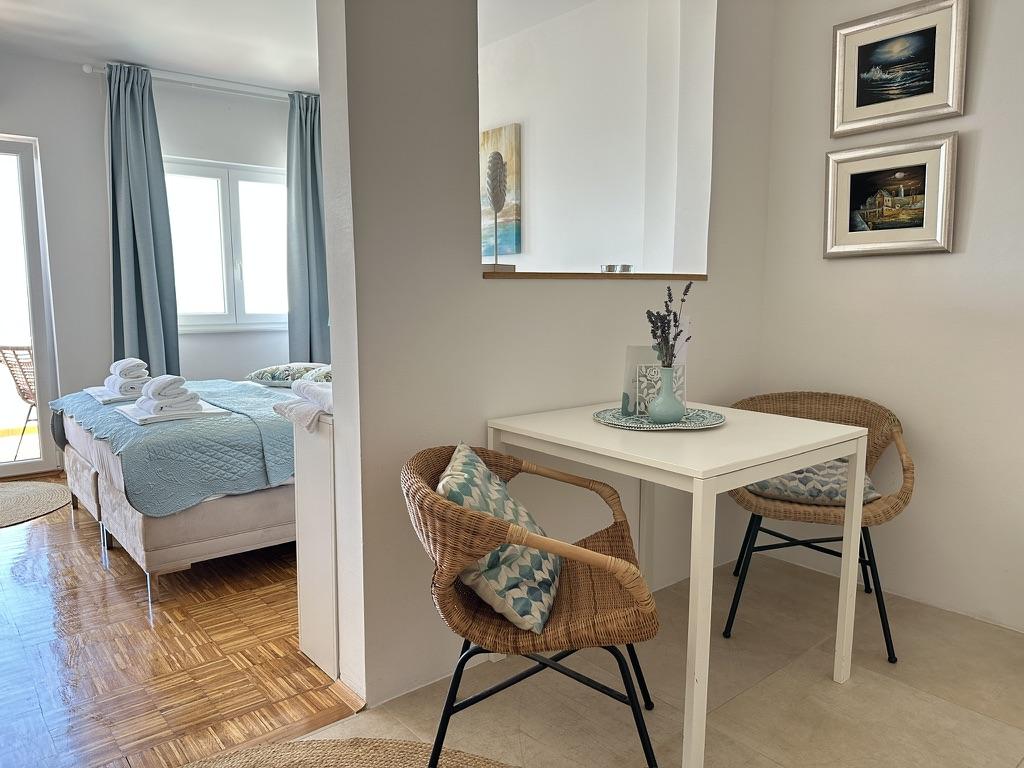 Entourée de soleil, la Residence est située dans le vieux Baska, à 150 mètres du rivage. Bien que la maison se trouve au cœur du vieux village, elle n’est qu’à quelques pas de la plage. Vous pouvez choisir entre plusieurs appartements où vous pouvez accueillir entre 2 et 5 personnes. Chaque appartement possède sa propre terrasse avec vue sur la mer, où vous pourrez passer de longues nuits d'été en compagnie d'un ami ou d'une famille. Nous nous sommes occupés de votre accès Internet, des couvertures et de la literie. Les amateurs de barbecue ont un barbecue et tous les extras nécessaires. Pour votre confort, chaque appartement dispose de son propre espace de stationnement sécurisé. Dans nos appartements, vous pourrez profiter d'une atmosphère détendue et de la paix méritée ou opter pour des vacances actives, baignade et vélo. Laissez-nous vous souhaiter la bonté et permettre à vos vacances de rêve.