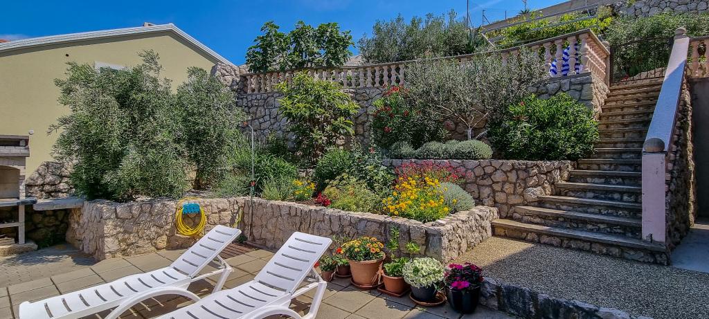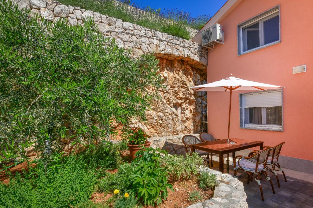 Old Baška est un petit endroit tranquille à l'extrême sud de l'île de Krk. L'installation est située à l'extrémité du site - à l'extrémité de la route goudronnée. Le jardin est joliment décoré avec des terrasses avec barbecue, douches et petits espaces verts - jardins. La distance de la plage de sable et de galets est de 100 mètres. La couchette dans le petit port est à 100 mètres de la propriété. Le centre se trouve à 10 minutes à pied. Il y a 4 restaurants à proximité. Distance au premier restaurant est à 50 mètres. L'installation est nouvelle et les appartements sont équipés de façon moderne. La cour dispose de 8 places de parking. (3 places de parking sous le toit, les autres non couverts)