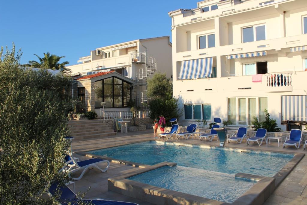 Bonjour chers invités ! Nous sommes une station familiale à Stara Novalja sur l'île de Pag. Nos logements sont situés directement sur la mer et la plage, nous disposons d'une piscine idéale pour les enfants et les familles, notre parking et un amarrage pour bateau. Les appartements sont entièrement équipés avec de belles terrasses avec vue sur la mer, de grands appartements Type A4 +2 avec 2 salles de bains et des chambres d'hôtel en formule bed and breakfast. Le grand Penthouse de 230 m2 est également neuf. Pour toutes autres informations, possibilités et réservations, vous pouvez nous contacter. Merci !