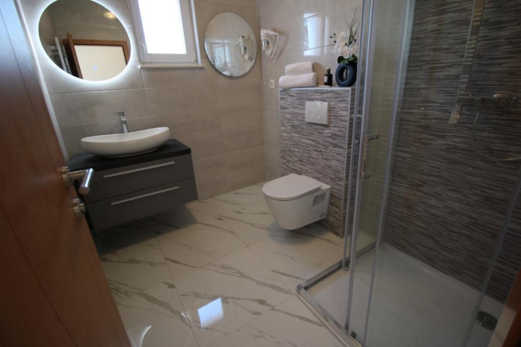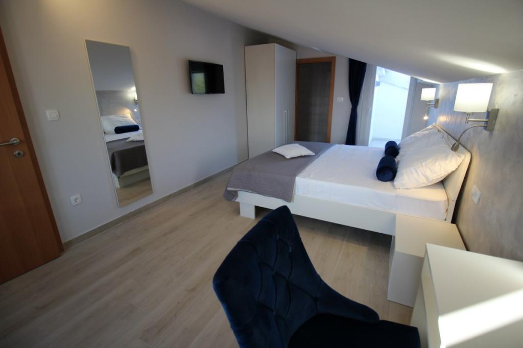 Depuis de nombreuses années maintenant, nous avons enfin passé de merveilleuses journées dans cette maison d'hôtes en août. Nous avons été chaleureusement accueillis par toute la famille. Les nouvelles chambres et appartements sont très confortables et meublés de façon moderne. La climatisation fonctionne très bien, les lits sont confortables et la vue sur la mer Adriatique depuis le balcon est tout simplement fantastique. Le petit déjeuner était bon (saucisses, fromage, fruits, jus de fruits, céréales, œufs au plat). Tout était là. Le soir, nous avons mangé au restaurant. Ici aussi, nous ne pouvons que dire des mots d'éloge. Le service était très rapide et sympathique et la nourriture proposée était variée et de très bon goût. Nous tenons à remercier nos hôtes, la famille Peranic-Borovic, et nous reviendrons certainement bientôt.