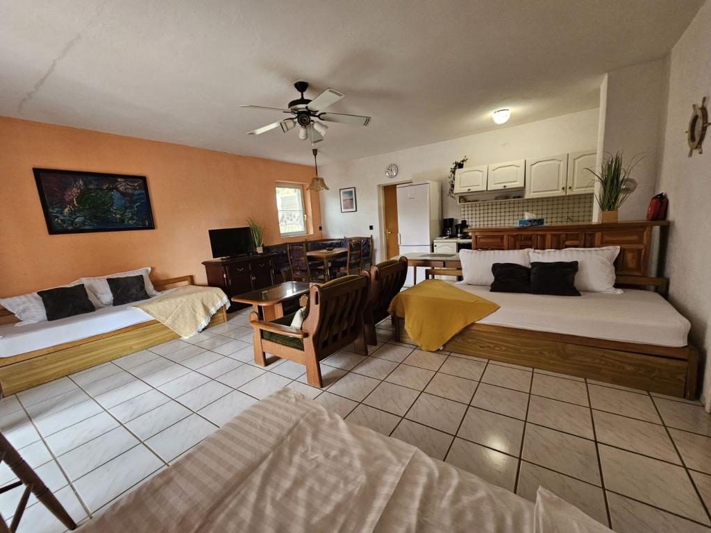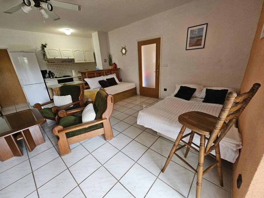 Les appartements sont situés dans la magnifique baie de Stara Novalja, sur l'île de Pag. Tous les appartements disposent d'une terrasse avec vue sur la mer, de la télévision par satellite et d'une connexion Wi-Fi. Les appartements 2+2 sont climatisés, tandis que l'appartement 6+2 est équipé de ventilateurs de plafond. Les familles et les petits animaux de compagnie sont les bienvenus. Le prix comprend toutes les taxes, l'utilisation de la climatisation, la télévision par satellite, le parking et le linge de lit.
