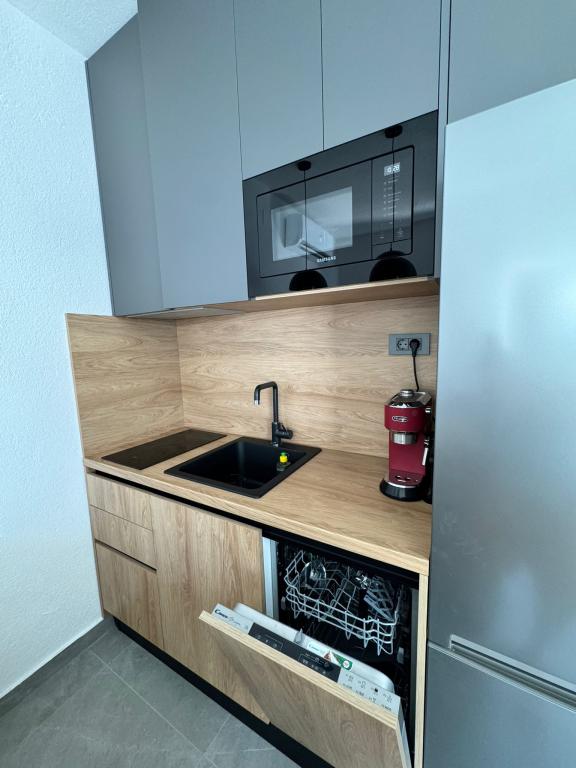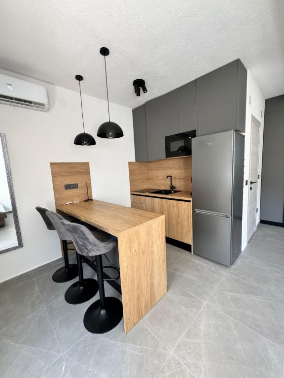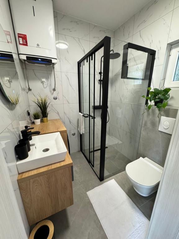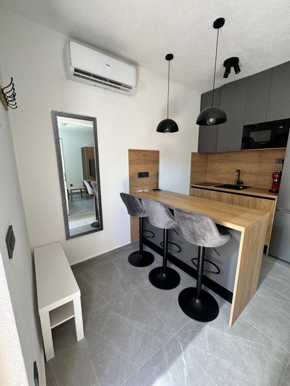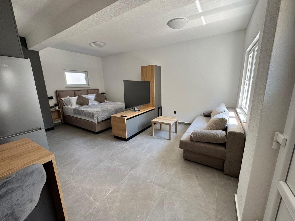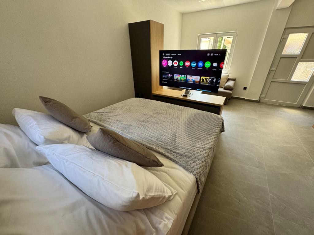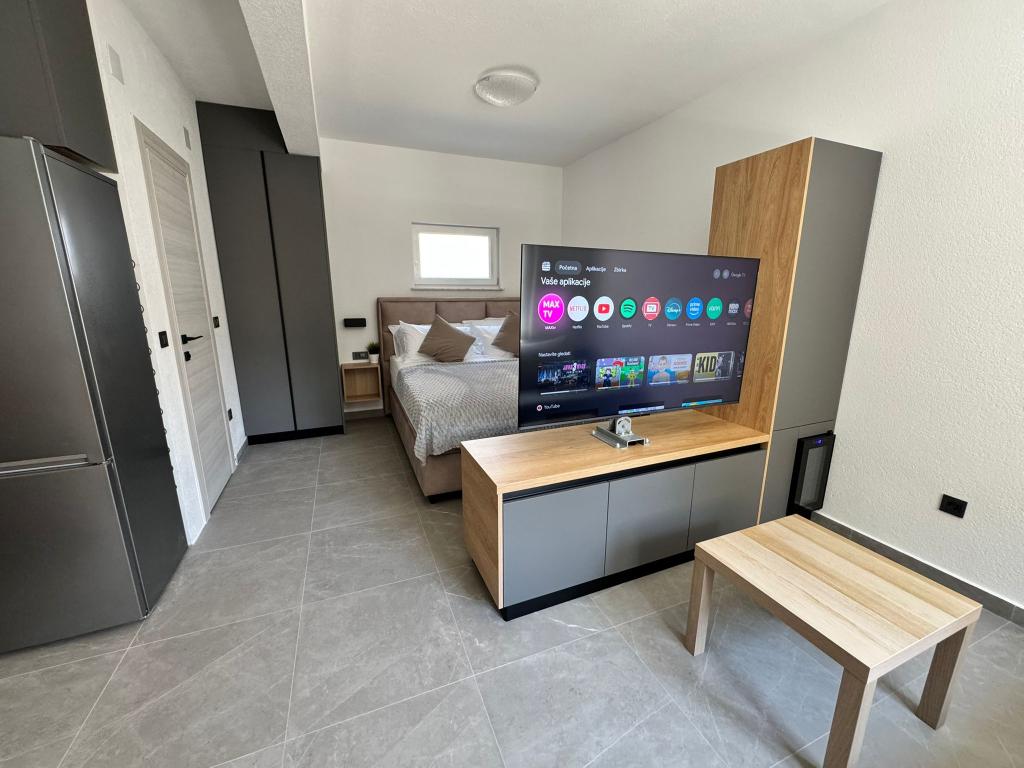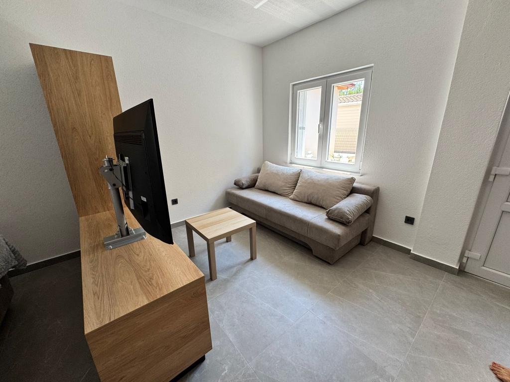 Ce studio, récemment meublé et entièrement rénové, se situe dans un immeuble indépendant au calme de Starigrad, à seulement 1 km de l'entrée du parc national de Paklenica et à 500 m de la mer. C'est le choix idéal pour les amoureux de la mer et de la nature. Conçu pour 3 personnes, l'appartement est équipé de tout le nécessaire pour un séjour agréable et reposant : climatisation, Wi-Fi, Google TV (Netflix et MaxTV), cuisine entièrement équipée (lave-vaisselle, micro-ondes, cafetière…), salle de bain moderne (lave-linge) et literie de qualité. Vous profiterez également d'une agréable terrasse avec gazebo et d'un barbecue dans le jardin. À proximité, vous trouverez un supermarché Tommy, des restaurants, une pharmacie et une station-service. La mer est accessible en 5 minutes à pied ou en 1 minute en voiture. Un parking est disponible juste à côté de l'immeuble et les hôtes sont toujours disponibles pour vous aider.