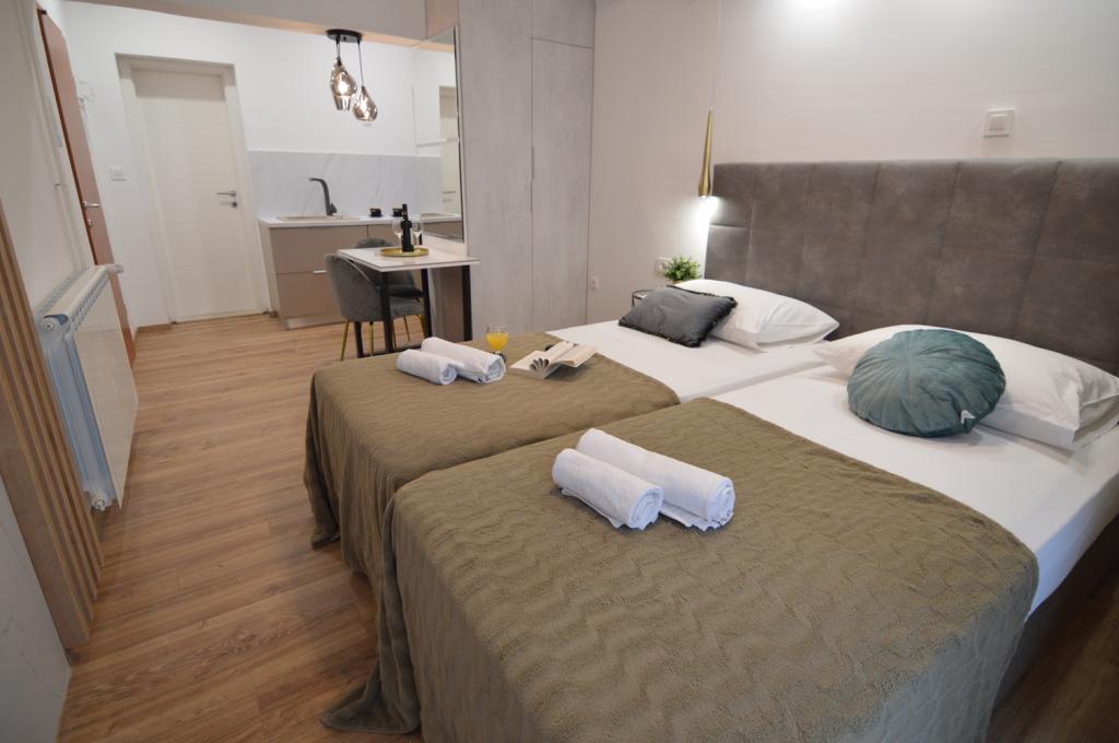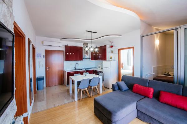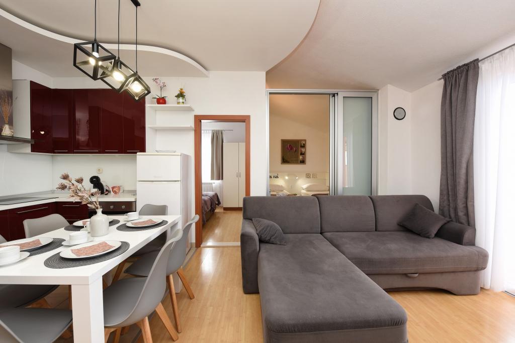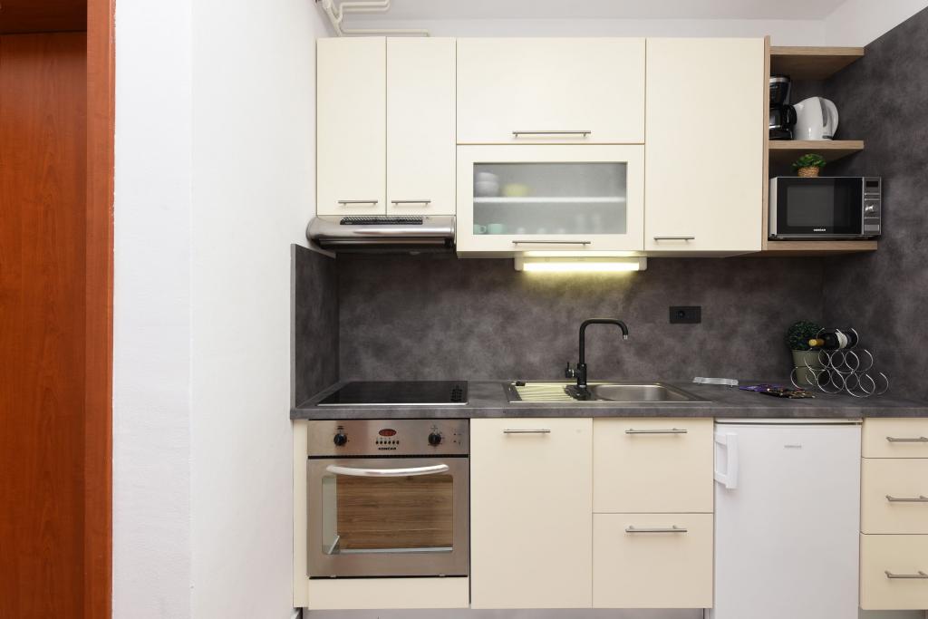 Appartements à Starigrad Paklenica, à 190m de la mer, à 2 km du parc national de Paklenica. Nous avons plusieurs appartements : studio 2 personnes, appartement 2 personnes et 1 chambre, appartement 4 personnes avec deux chambres. Les appartements sont entièrement équipés, climatisation, Wifi, cafetière, micro-ondes, bouilloire, TV/2Sat, coffre-fort, lave-vaisselle, linge de toilette par personne, sèche-cheveux, climatisation, chauffage central, ... Vous pourrez passer vos vacances avec piscine et bronzer sur la plage ou passer des vacances actives, se promener dans Velebit, faire de l'escalade dans le parc national de Paklenica, faire du vélo, du kayak, du rafting sur la Zrmanja, faire une promenade en bateau ...