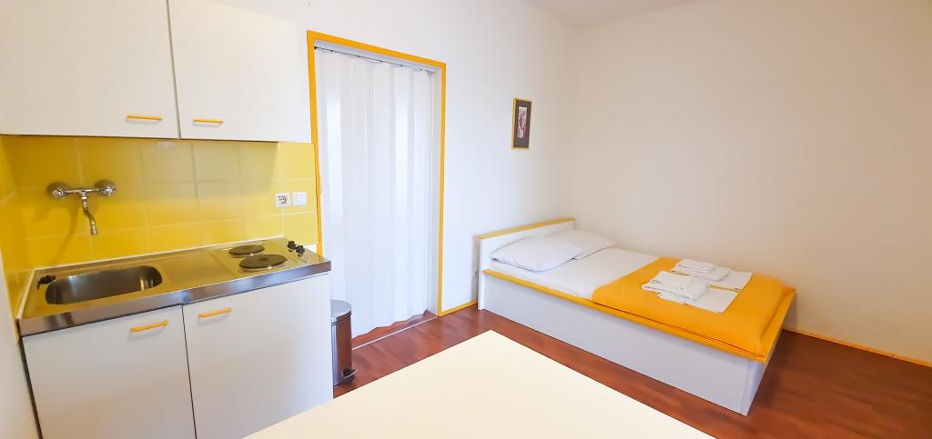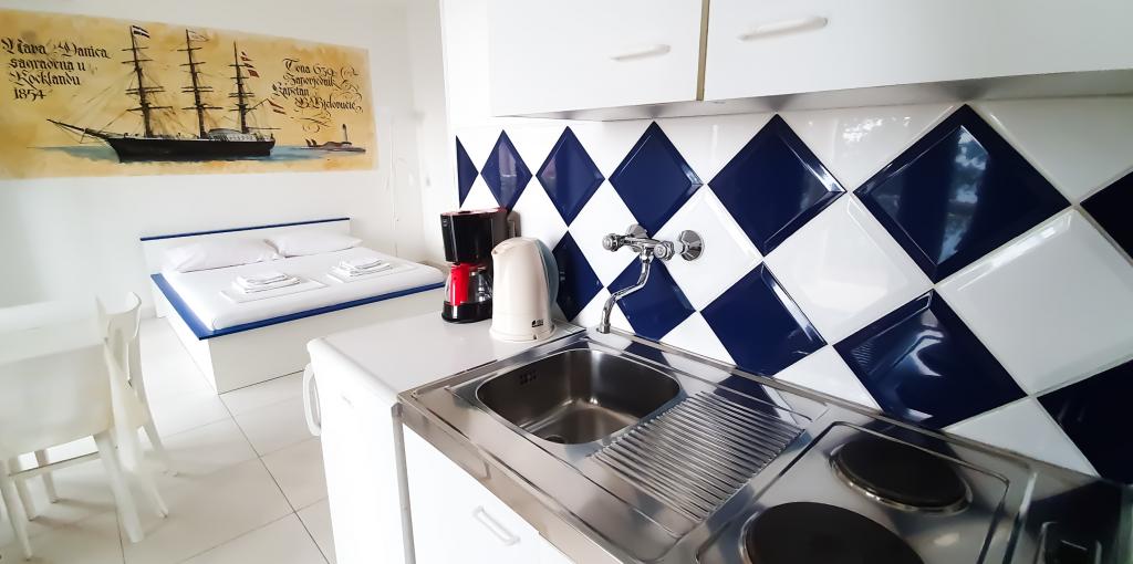 Studio confortable avec une belle vue et une terrasse à quelques pas de la mer. Propriétaires sympathiques. Nous recommandons.