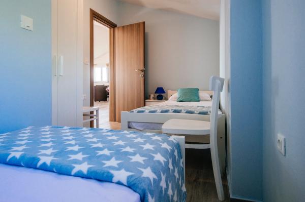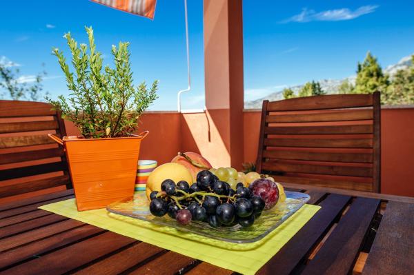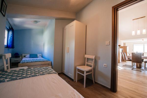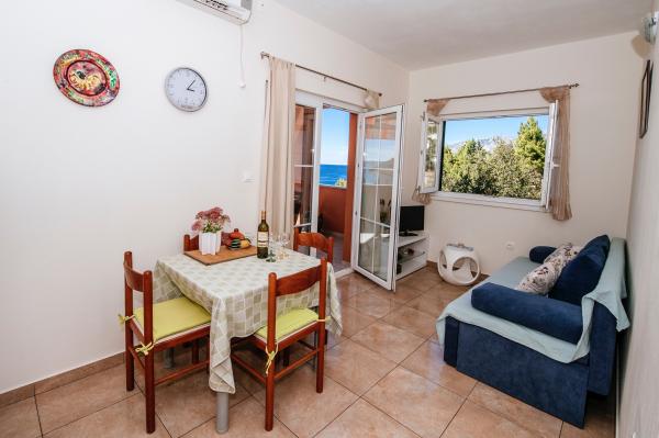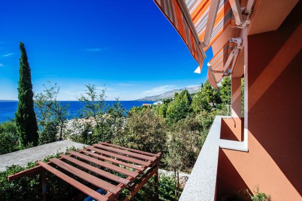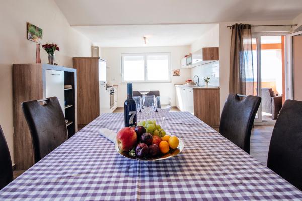 appartements équipés de façon moderne avec balcon, deux chambres et séjour avec cuisine, vue mer dans un quartier calme de Starigrad. A 60 m de la mer et à 1,5 km du Parc National. Distance du centre 500 M. Parking prévu dans la cour.