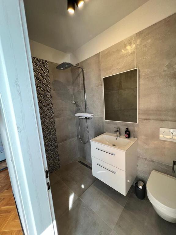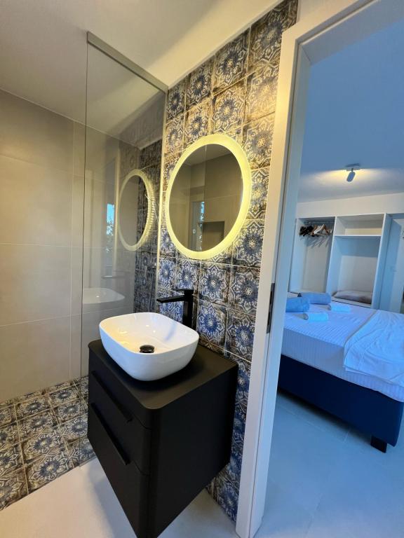 Deux appartements de luxe (un pour 4 personnes et un pour 5 personnes) et un studio pour 2 personnes sont à louer, en première ligne de mer, à 4 km de Starigrad-Paklenica. Profitez de vacances inoubliables dans nos appartements exclusifs situés directement sur la côte, avec un accès direct à une mer cristalline. Cet hébergement offre tout le nécessaire pour des vacances parfaites : une chambre spacieuse : élégamment décorée, avec un lit confortable et des détails modernes, et une salle de bain privée dotée d'équipements haut de gamme. Une cuisine entièrement équipée** : une cuisine moderne avec des appareils électroménagers dernier cri, idéale pour préparer de délicieux repas. Une terrasse privée pour chaque appartement : un havre de paix avec une magnifique vue sur la mer, idéal pour se détendre avec un café le matin ou un coucher de soleil le soir. Une douche extérieure : profitez d'une douche rafraîchissante sous les étoiles, en pleine nature. Un environnement naturel : l'appartement est situé en première ligne de mer avec un accès direct à la plage, dans un cadre idyllique, entouré d'une végétation méditerranéenne luxuriante et des senteurs marines.