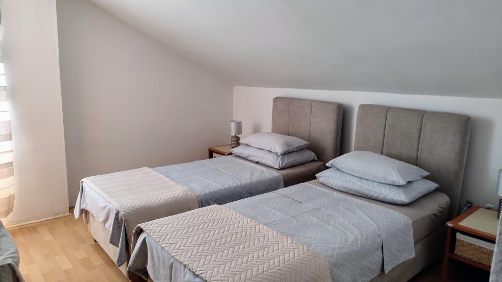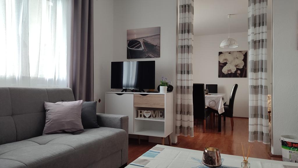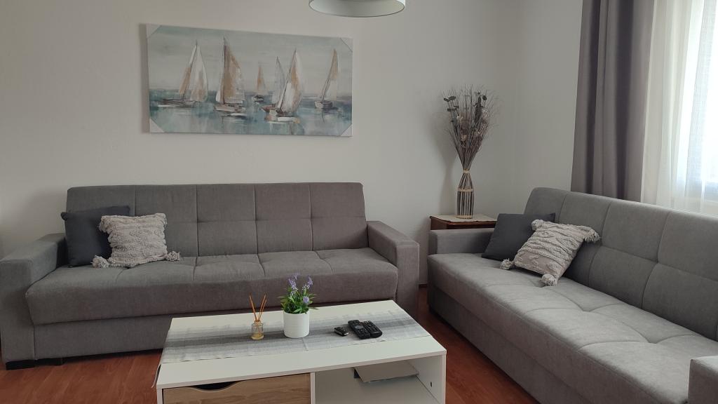La maison de vacances Beli se situe à Tribanj, près de Starigrad et du parc national de Paklenica. Starigrad et le parc national de Paklenica sont accessibles en 15 minutes de voiture. Nous proposons deux appartements modernes de deux chambres, d'une superficie de 65 m² chacun. Les appartements sont climatisés et équipés du Wi-Fi, de la télévision par satellite et de grandes terrasses offrant une vue imprenable sur la mer et l'île de Pag. La maison dispose d'un grand jardin clos, d'un barbecue et d'un parking gratuit. Dans la baie située de l'autre côté de la route, à 20 mètres de la maison, une plage de béton aux eaux cristallines est à la disposition de nos hôtes. À Tribanj et dans les environs, vous trouverez des commerces bien achalandés, de petites plages et des restaurants proposant grillades et poissons. Starigrad, à 10 minutes en voiture de la maison, offre une gamme plus variée de restaurants et d'activités. La maison, située en retrait dans une baie au cœur d'un environnement naturel préservé, garantit calme et intimité. Elle est idéale pour des vacances en famille ou entre amis. Les appartements sont séparés, chacun a sa propre entrée vers l'espace de vie !!!! .
