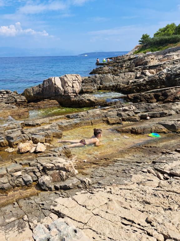 Un endroit merveilleux pour une île agréable. La plage en face de la maison avec une eau cristalline. Chaque pierre dans la mer pour voir la belle grande terrasse. L'appartement est joliment meublé, climatisé, bien équipé, avec un grand réfrigérateur et grand congélateur. Tout est propre et bien rangé. La vue depuis la terrasse est magnifique. Les hôtes sont très sympathiques, serviable et sympathique. Le plus j'aime ce suvotvoreni et les animaux domestiques. Nous venons pour la troisième année et nous recommandons vraiment.