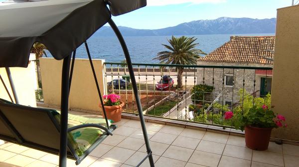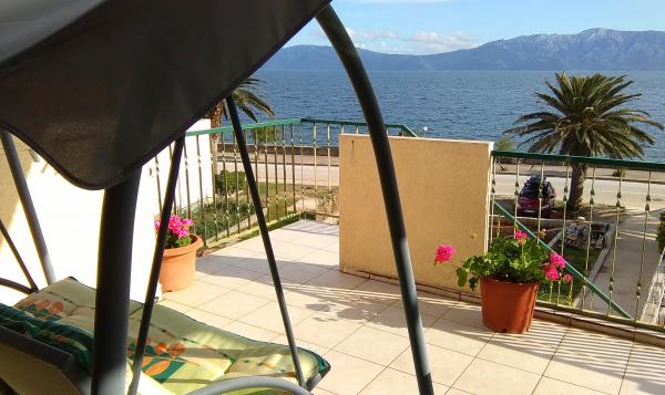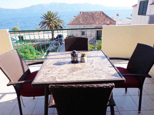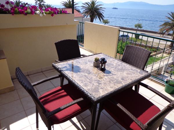 Super appartement est entièrement équipée avec une grande terrasse. Calme et les hôtes très aimables - offert le dîner de poissons grillés et de nager de votre bateau. La mer est à 30 mètres. Ce n'est pas vrai que les voitures qui attendaient pour prendre le ferry à troubler la paix. RECOMMANDE à tous ceux qui apprécient la paix et la tranquillité. La ville est magnifique - surtout le soir.
