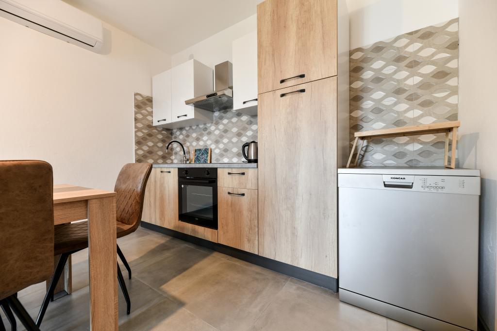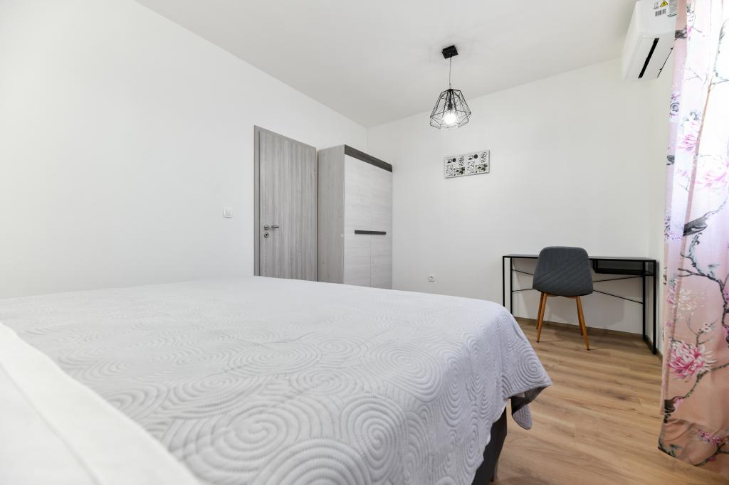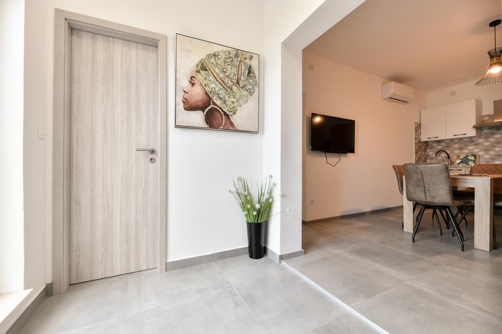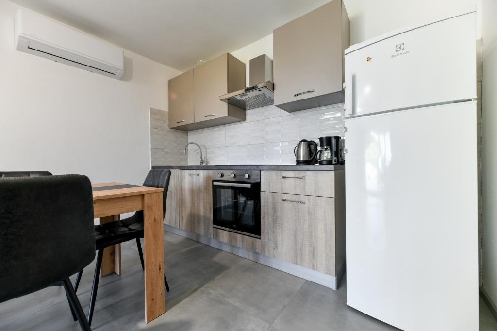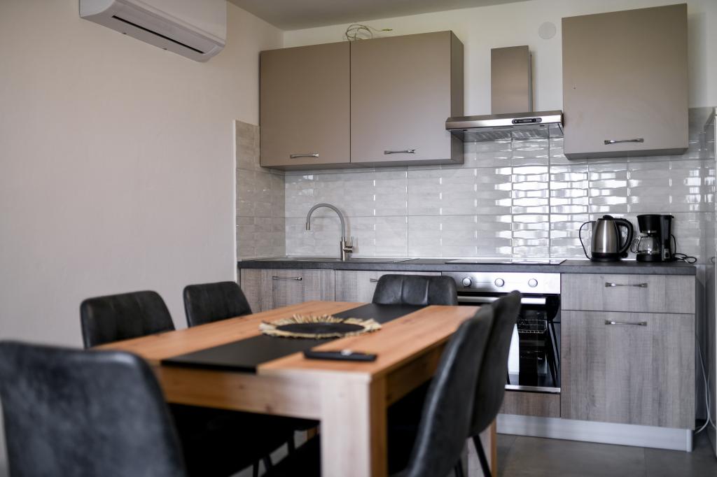 Les appartements sont neufs, beaux, entièrement équipés. Nous y retournons à plusieurs reprises depuis 5 ans, pour la vue magnifique sur la mer, la détente parfaite et le bien-être. La mer est juste de l'autre côté du jardin et la plage pour enfants est au coin de la rue. Les propriétaires sont merveilleux, gentils, arrangeants et chaleureux. Nous reviendrons